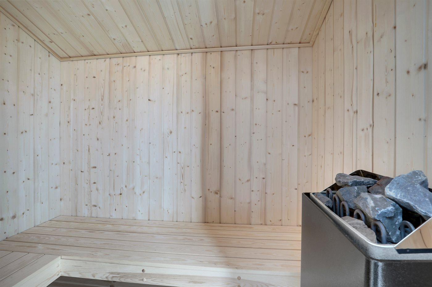 Der er 2 badeværelser med bruseniche og 2 toiletter. Der er gulvvarme på 2 badeværelser. I saunaen er der mulighed for afslapning.