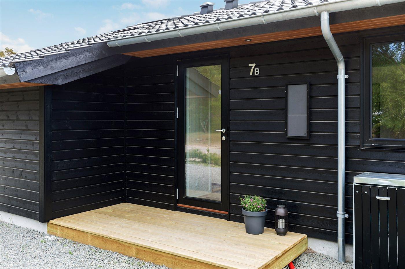 Ferieboligen er beliggende på en 1200 m² stor naturgrund. Der er 175 m til havet. Nærmeste forretning er beliggende i en afstand af 1500 m. Der er en golfbane i en afstand af 7000 m. Til ferieboligen hører 125 m² terrasseareal. Desuden er der 17 m² overdækket terrasse. Gynge. Udendørs bruser. Grill til rådighed. Der er installeret stik til opladning af elbil. Parkering ved ferieboligen.