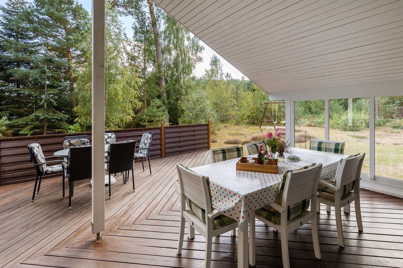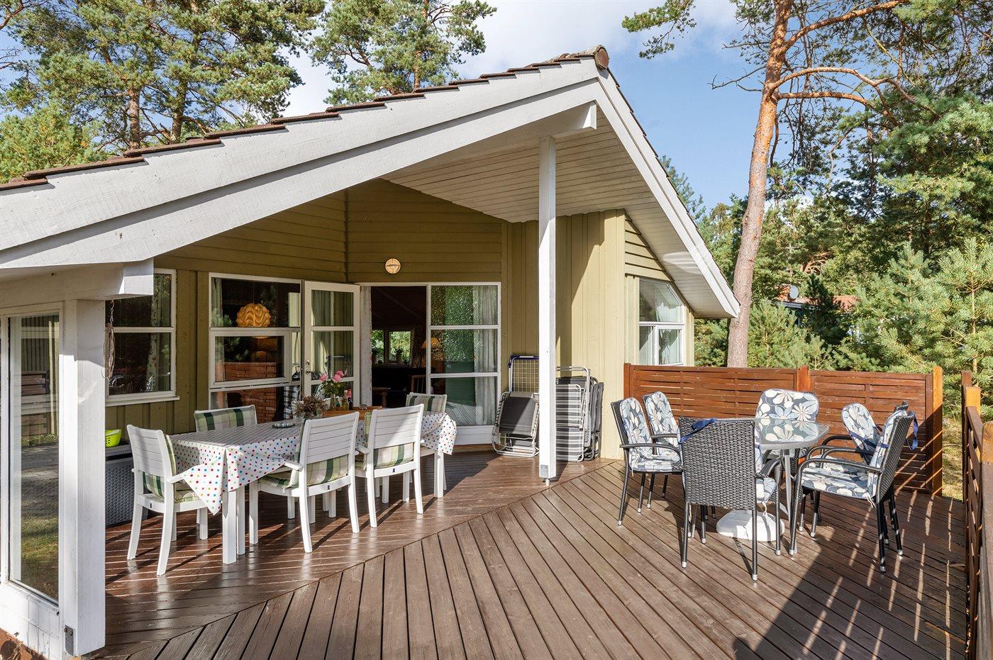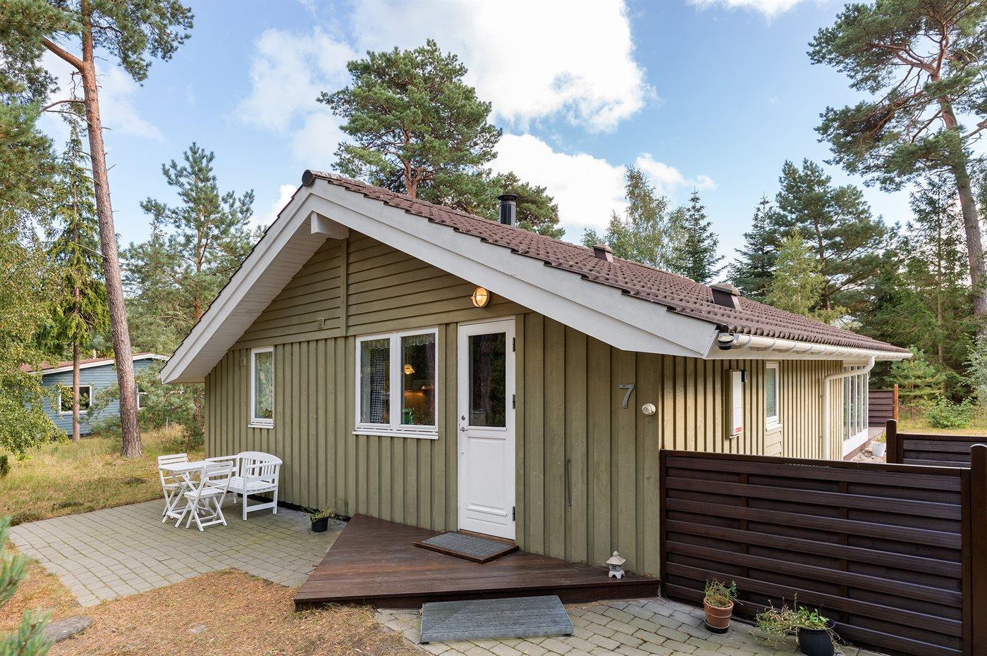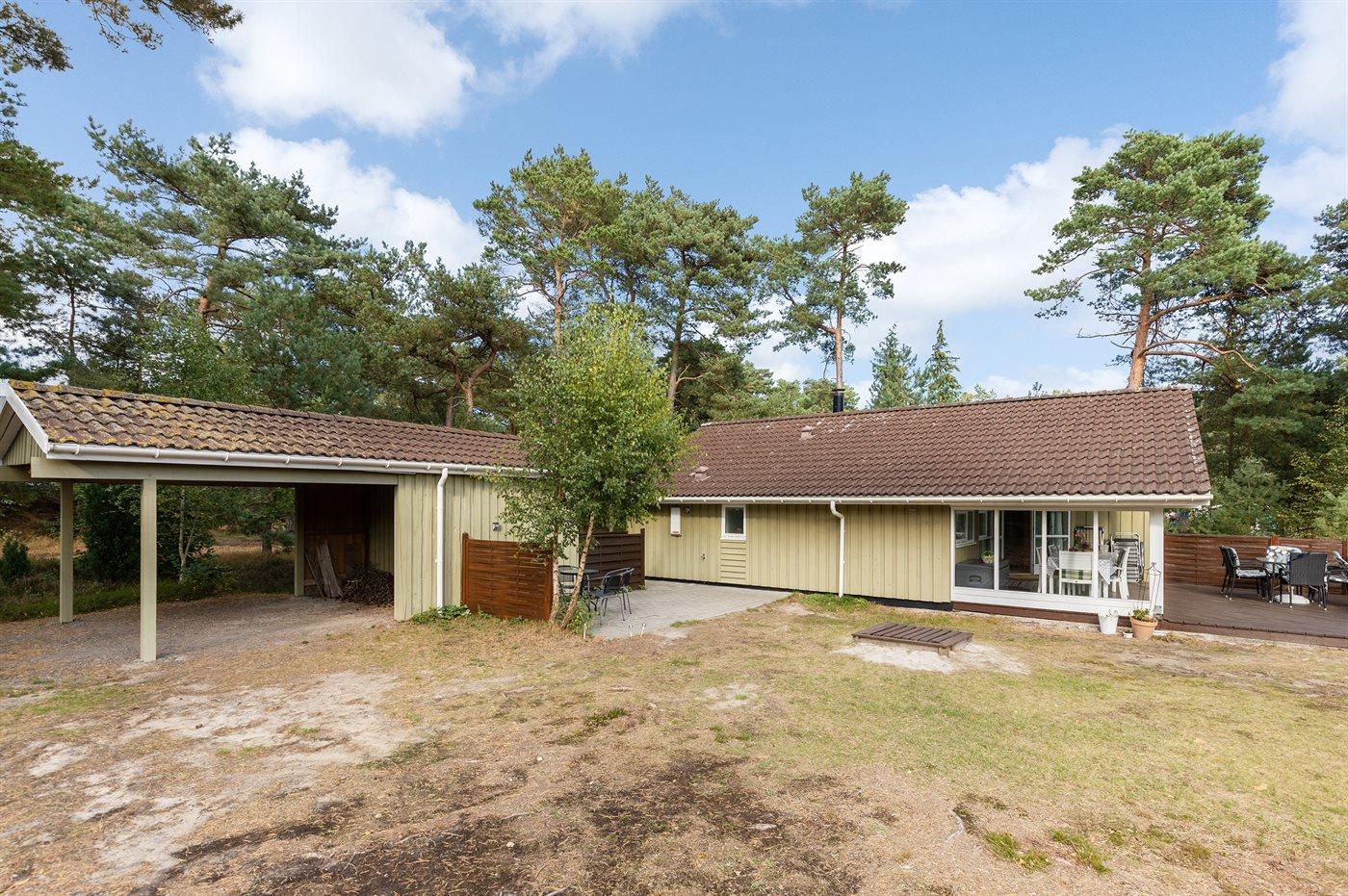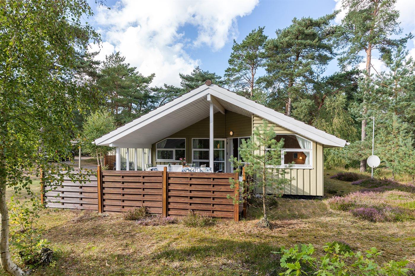 Et velbeliggende sommerhus i træ omgivet af en herlig naturgrund med fyrretræsbevoksning. Til huset hører 2 terrasser, hvor man kan nyde freden og roen, en god bog eller et måltid i det fri.