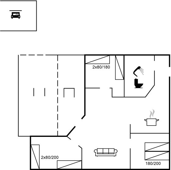 Der er i alt 3 soveværelser. Sovepladserne fordeler sig på: 2 sovepladser i dobbeltseng. 4 sovepladser i enkeltsenge.