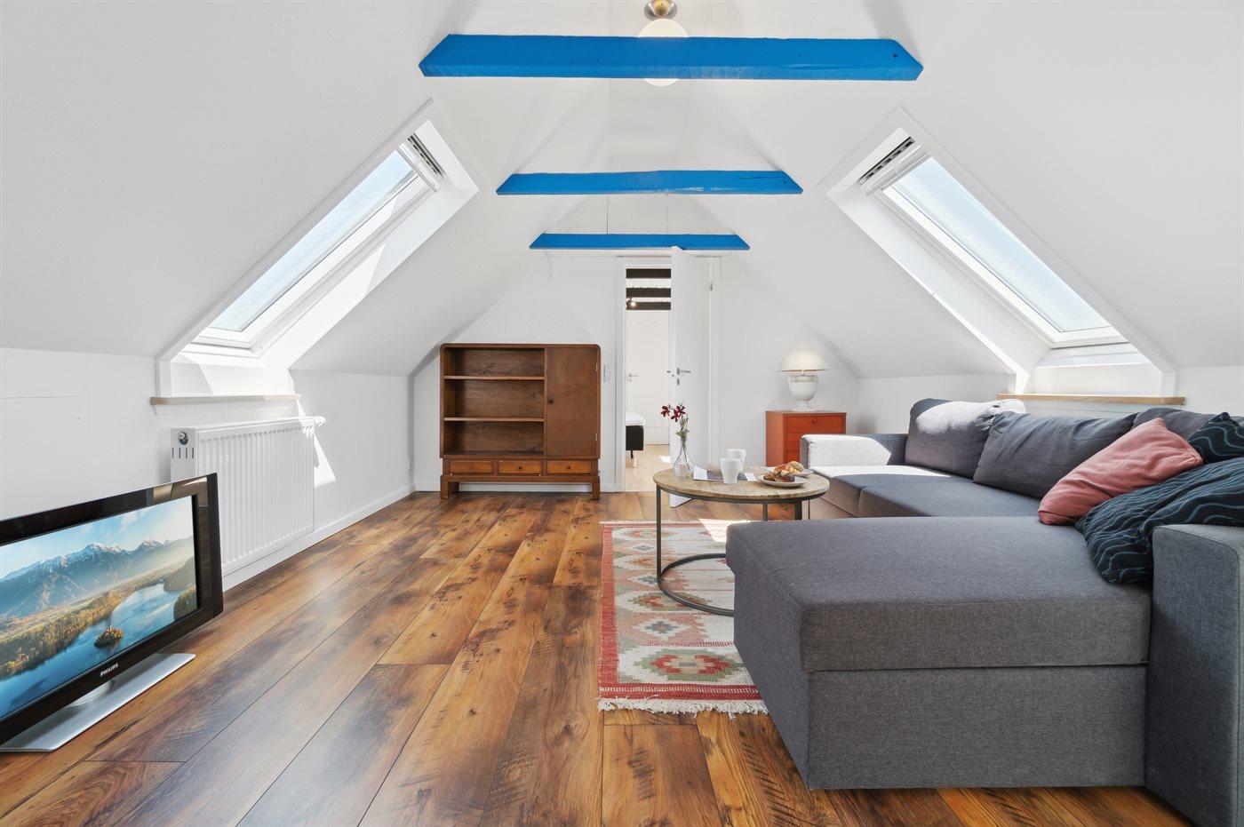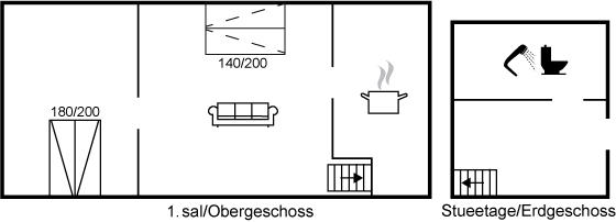 Der er i alt 1 soveværelse. Sovepladserne fordeler sig på: 2 sovepladser i dobbeltseng. 2 sovepladser i sovesofa (dobbelt). 2 af disse sovepladser befinder sig i stuen.