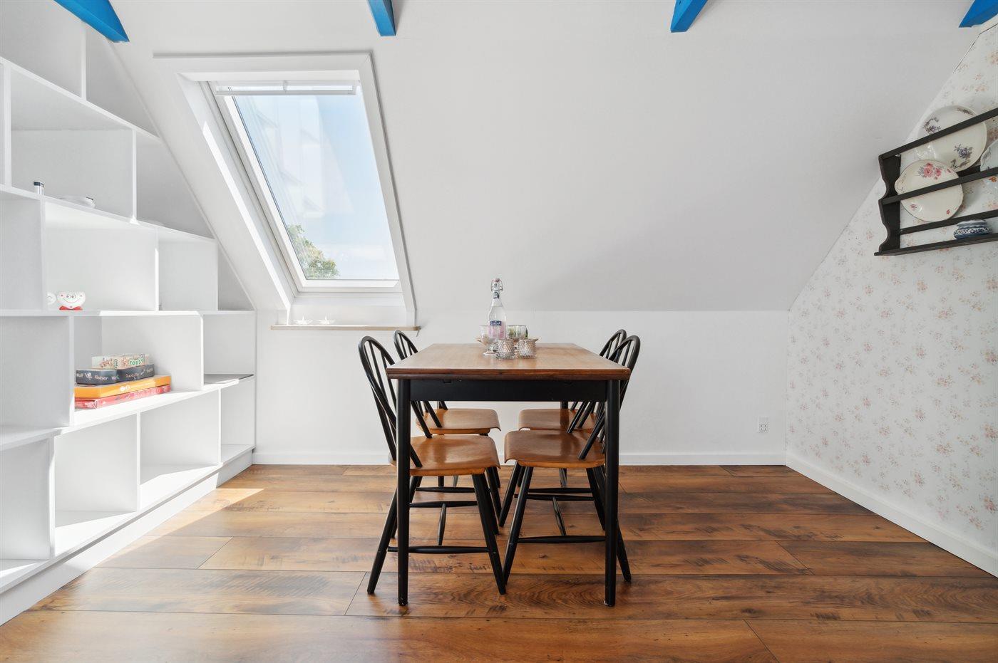 Lejligheden er indrettet i 2 plan med badeværelse samt entré i stueplan og de øvrige rum på 1. sal.