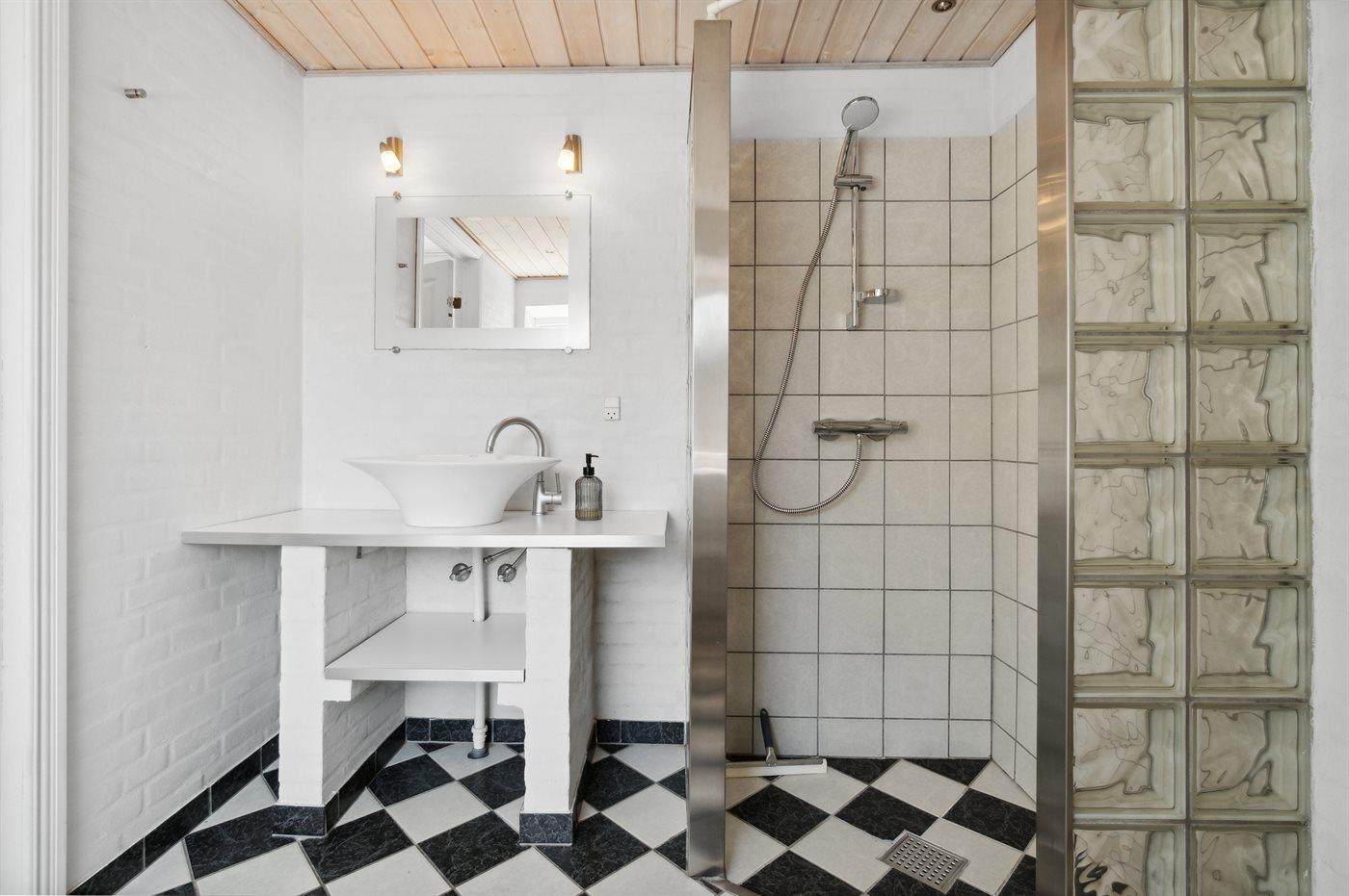 Der er 1 badeværelse med bruseniche og 1 toilet.