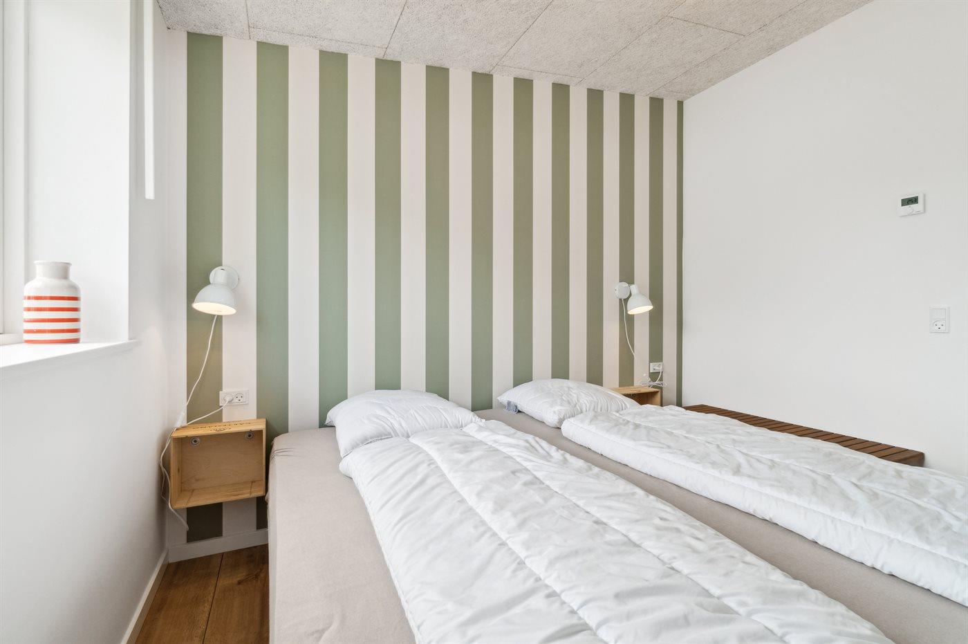Der er i alt 2 soveværelser. Sovepladserne fordeler sig på: 4 sovepladser i dobbeltsenge.1 soveplads i sovesofa (dobbelt). 1 af disse sovepladser befinder sig i stuen.