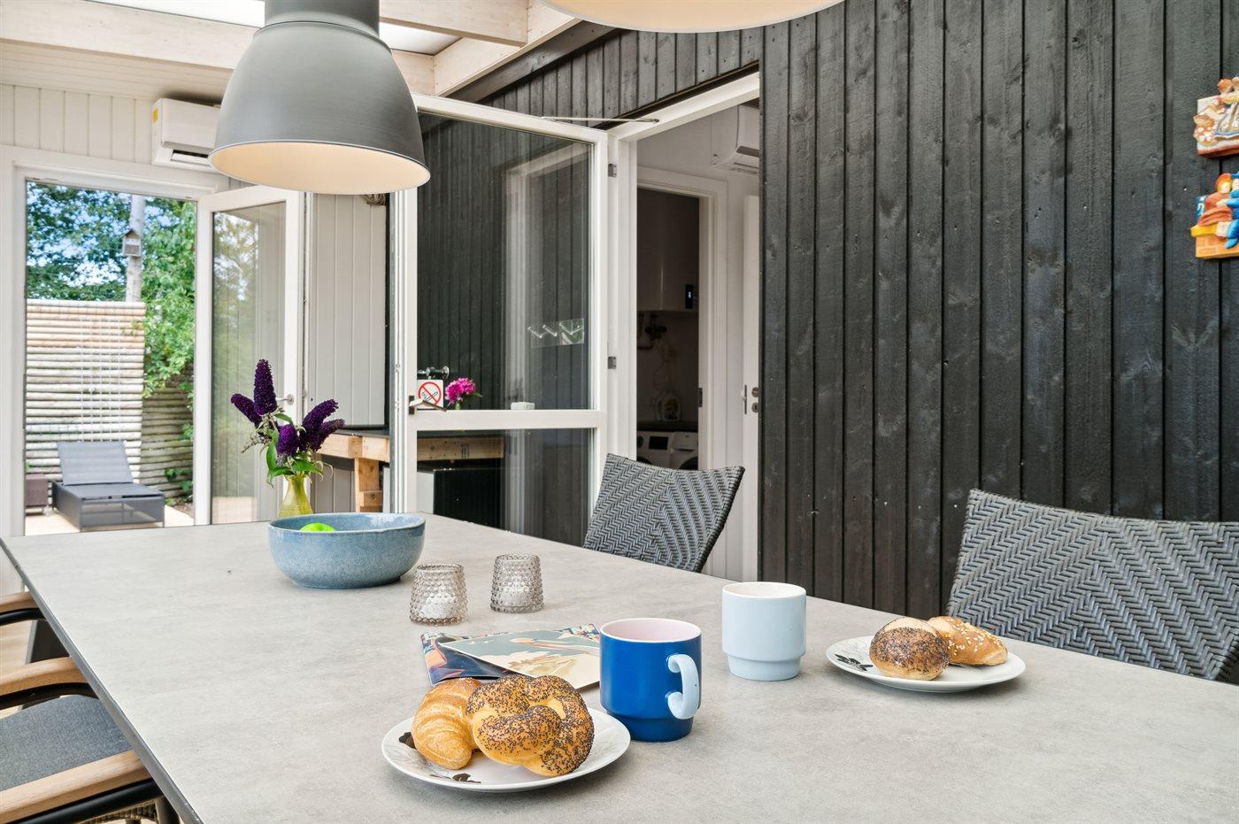 Huset er nydeligt og moderne indrettet med vægt på, at det også skal være hyggeligt at holde ferie i et sommerhus på Balka. Husets udestue supplerer opholdsrealet på bedste vis og forbinder på skøn vis huset med de dejlige udendørsarealer.
