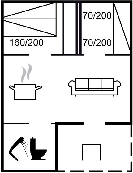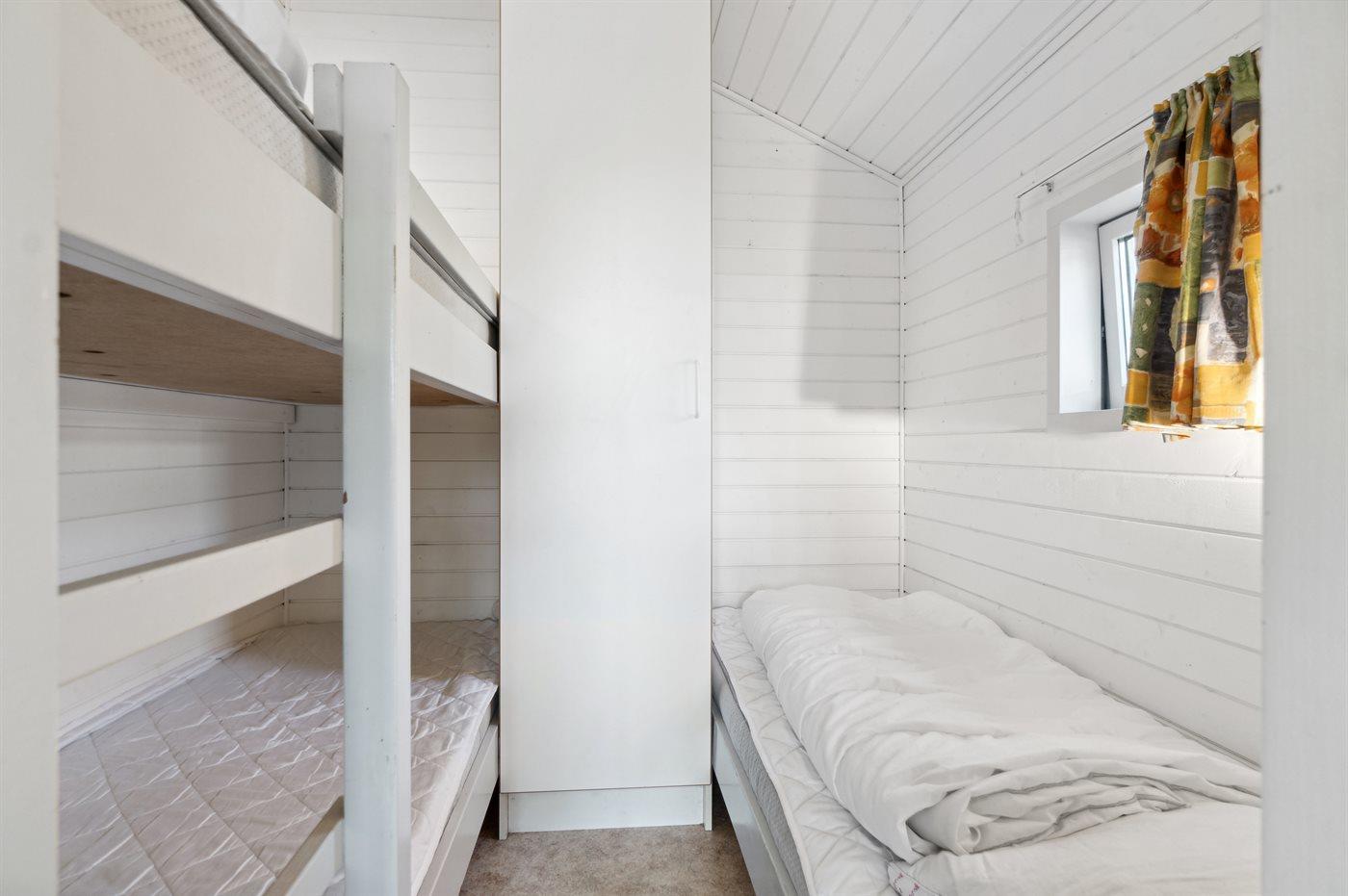 Der er i alt 2 soveværelser. Sovepladserne fordeler sig på: 2 sovepladser i dobbeltseng. 1 soveplads i enkeltseng. 2 sovepladser i køjeseng.