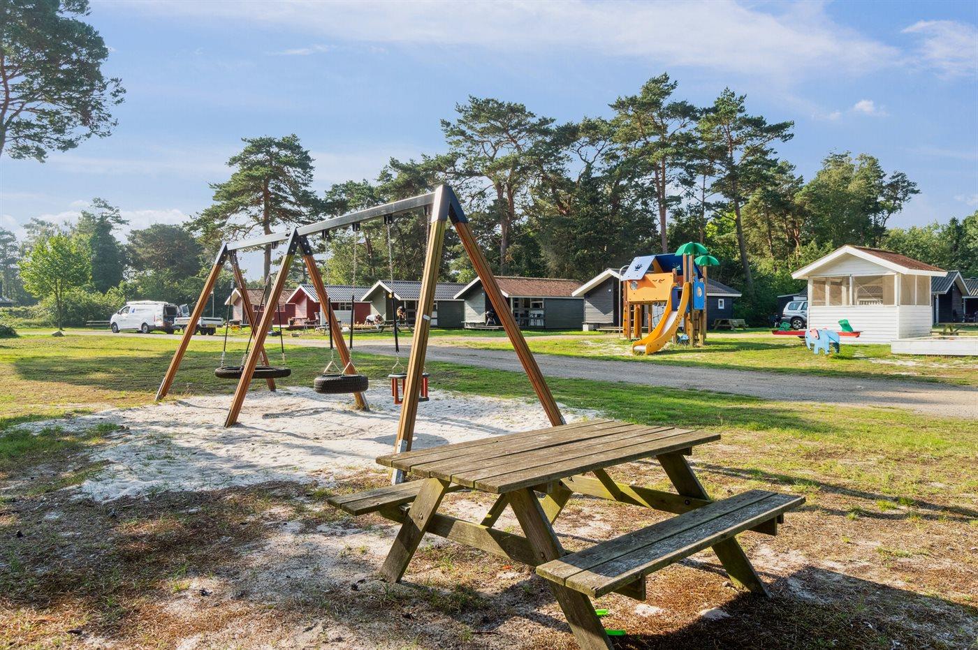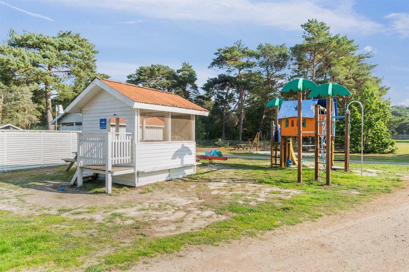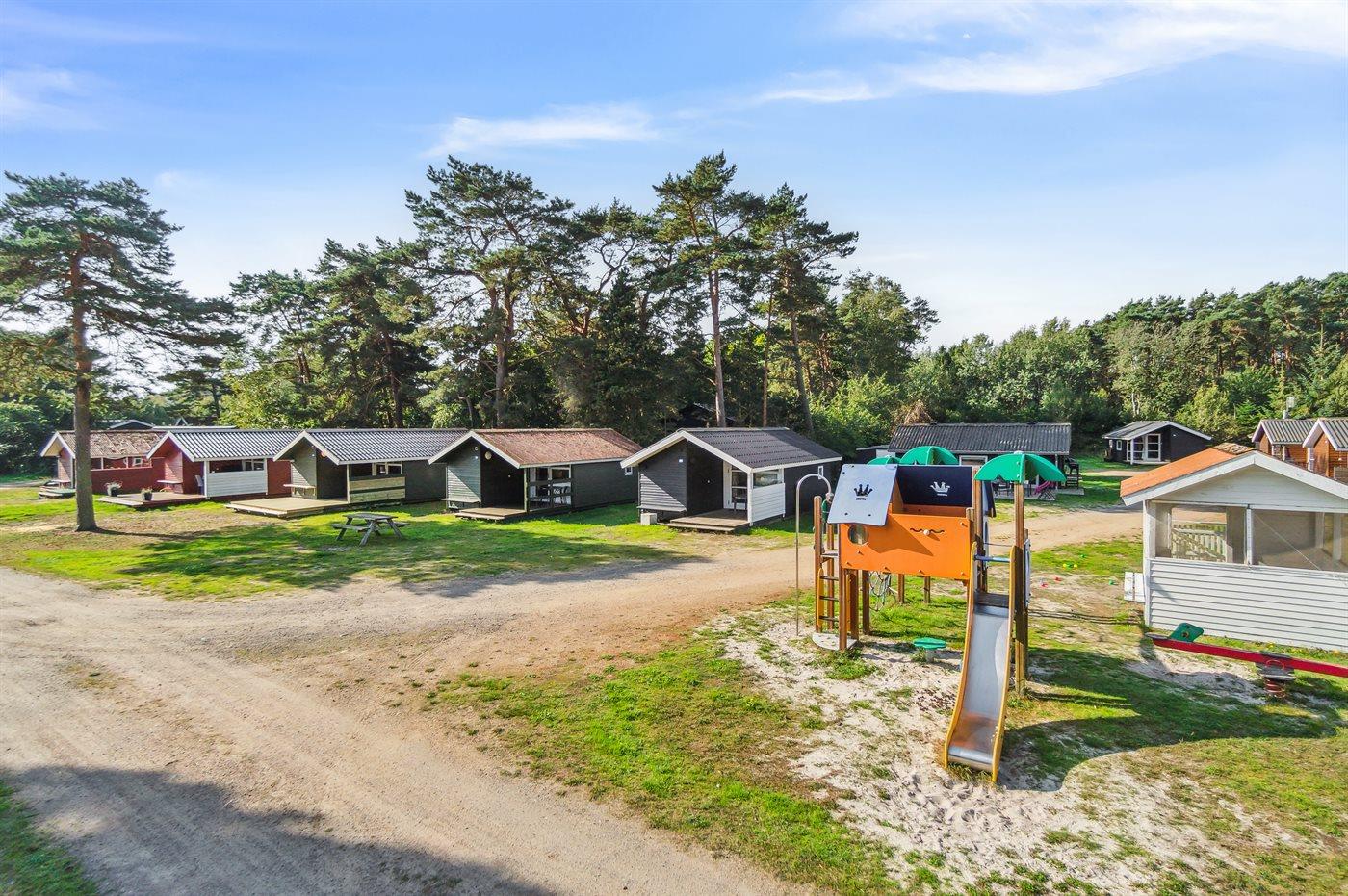 Hyggeligt sommerhus i Balka Strand Feriepark tæt på børnevenlig strand og legeplads, perfekt til familier.