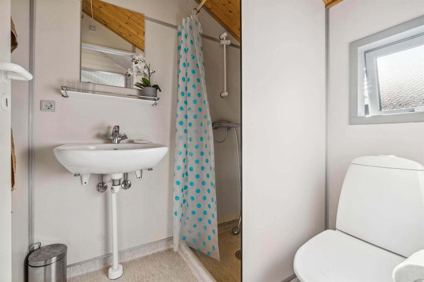Der er 1 badeværelse med bruseniche og 1 toilet.