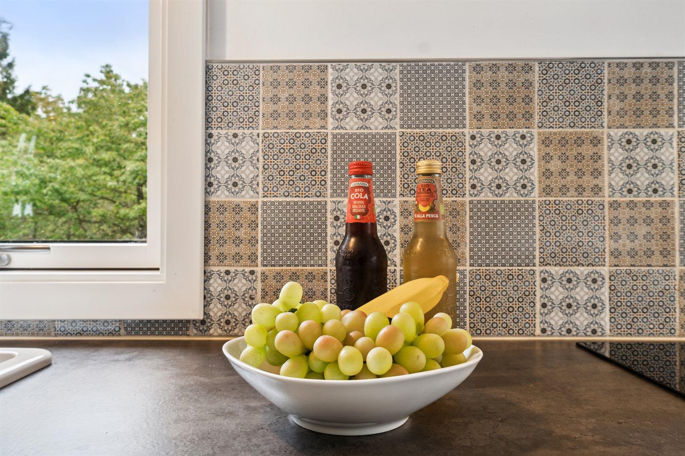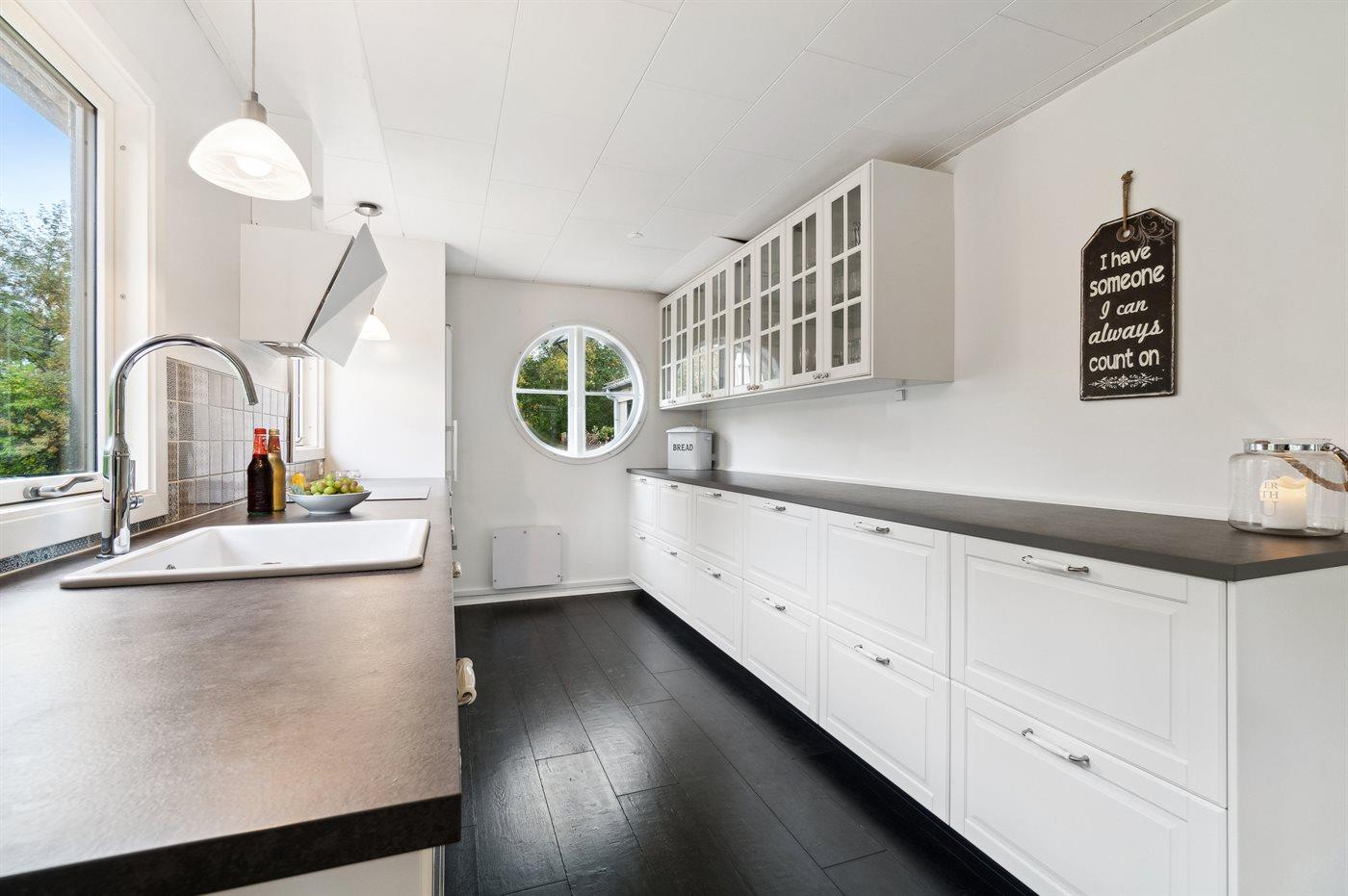 Køkkenet er udstyret med 1 køleskab. Der er 4 induktionskogeplader, varmluftovn, mikrobølgeovn samt opvaskemaskine.