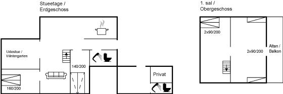 Der er i alt 4 soveværelser. Sovepladserne fordeler sig på: 4 sovepladser i dobbeltsenge. 2 sovepladser i enkeltsenge. 2 sovepladser i sovesofa (dobbelt). Derudover er der 1 stk. barneseng.
