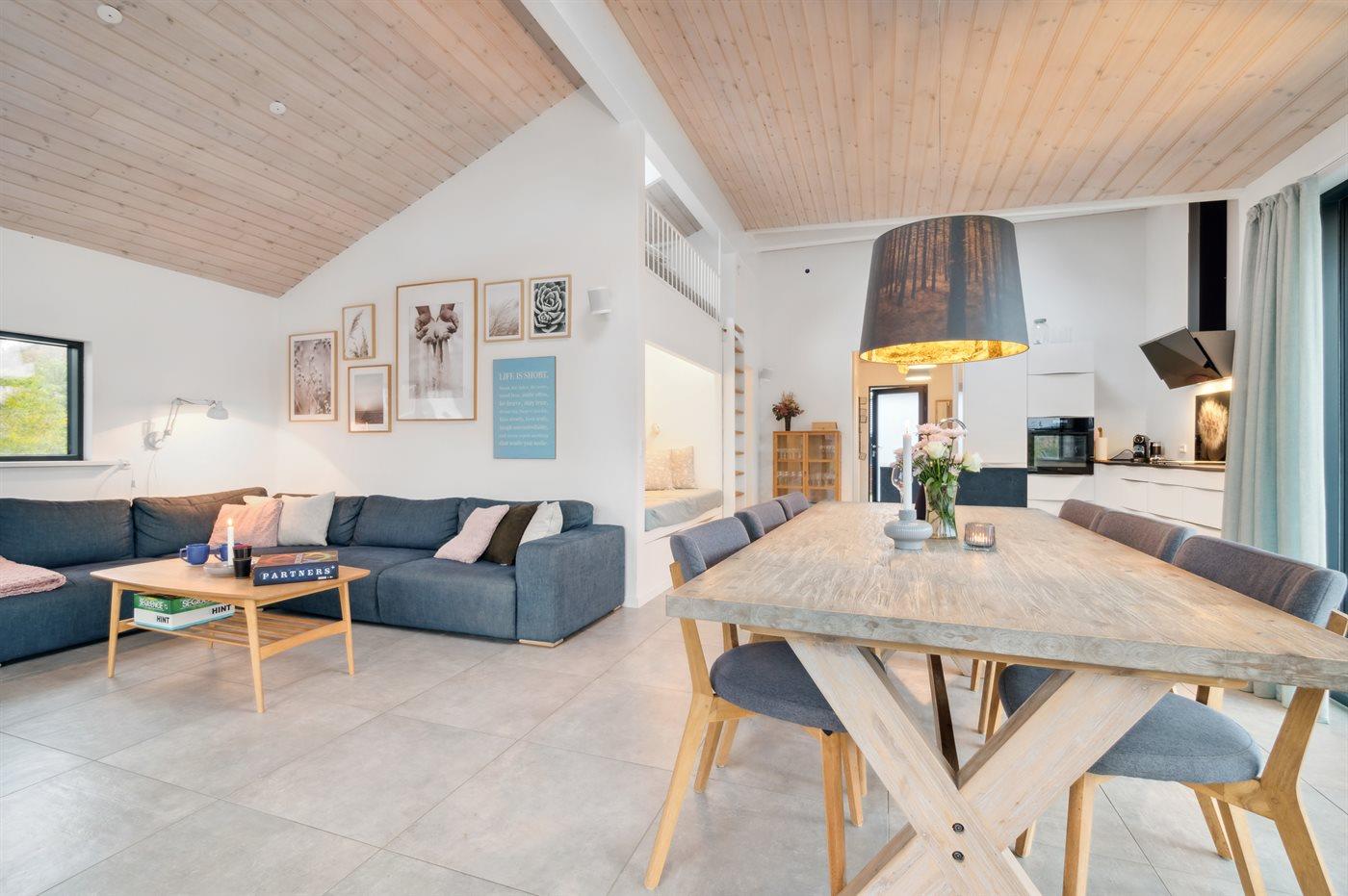 Stort velindrettet feriehus i absolut god kvalitet i nybygget feriehusområde med blot et par hundrede meter til den børnevenlige sandstrand på Balka. Huset er indrettet i virkelig god kvalitet - møblering er bekvem og kvalitetsbevidst i lys skandinavisk stil, der står flot til de lyse rum med lofter helt op i kip og med hvidmalede vægge og lofter. Køkkenet er ligeledes rummeligt og man får en klar fornemmelse af, at man er særdeles velkommen som gæst i dette store feriehus, der er omgivet af træterrasser, både åbne og overdækkede terrasser med god afskærmning, så man kan nyde solen i fred og ro. I sidebygning er der en indbydende sauna. Blot 1.000 meter til havnen i Snogebæk er jo ikke meget - restauranter, økologisk håndlavet is, røgeri, og Sørens Værtshus samt et spændende miljø med flere nye små spisesteder. DagligBrugsen i Snogebæk er leveringsdygtig i alle fornødenheder, der hører med til en rigtig god ferie på Østbornholm.