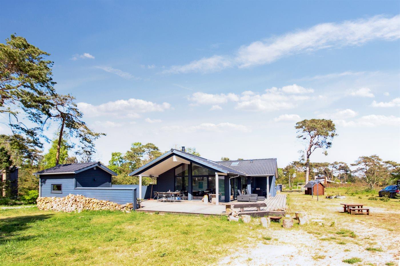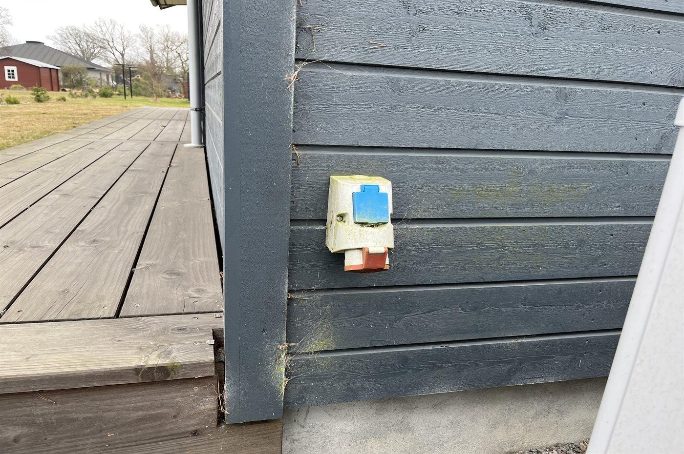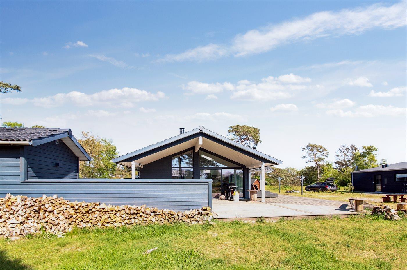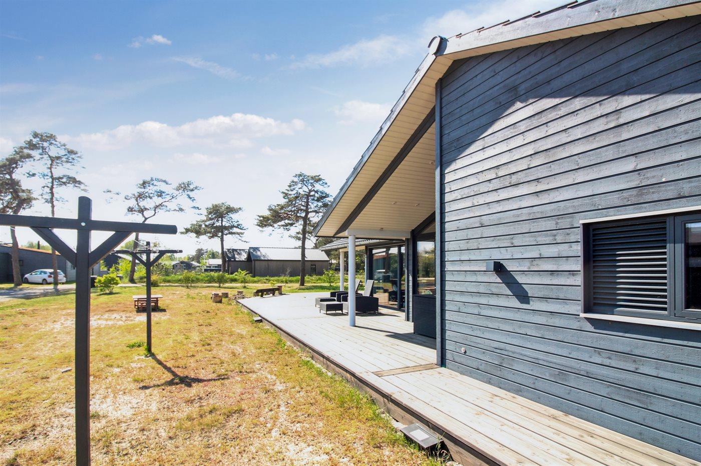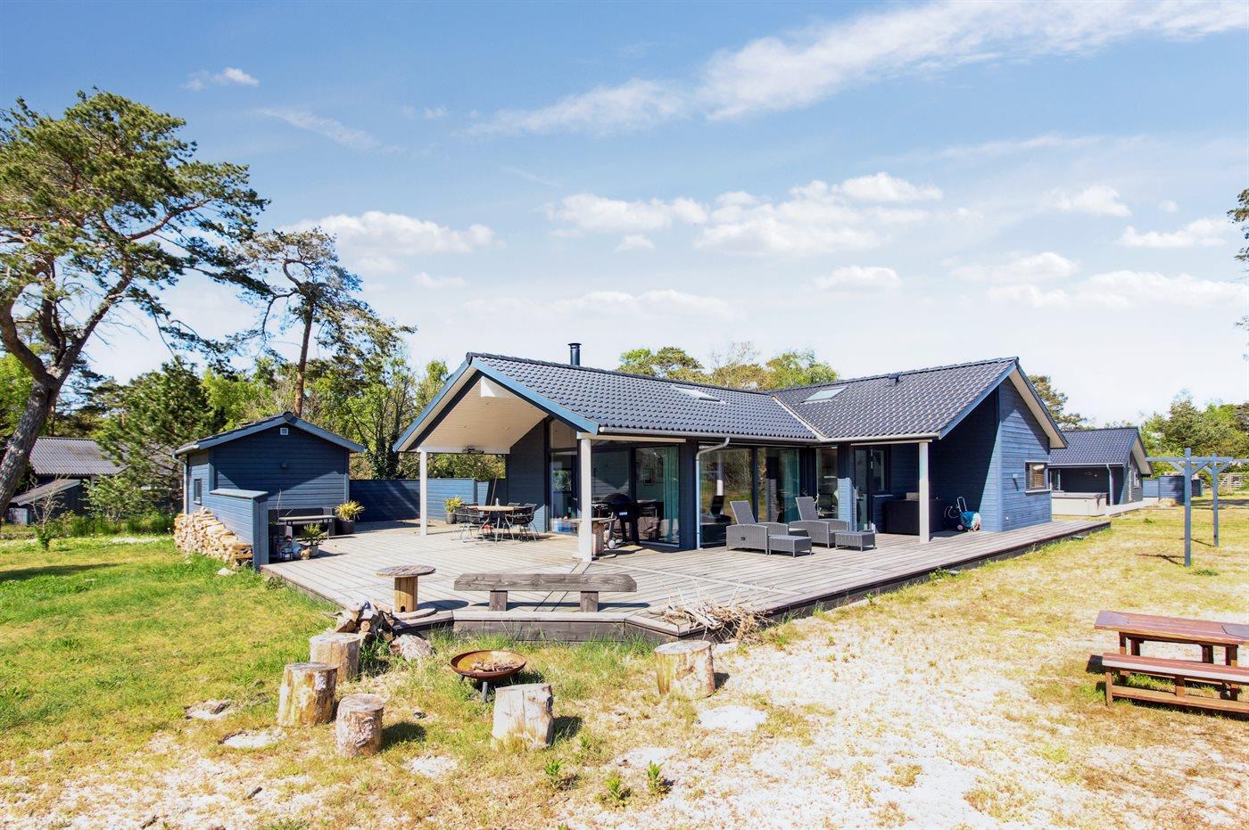 Ferieboligen er beliggende på en 1200 m² stor naturgrund. Der er 140 m til havet. Nærmeste forretning er beliggende i en afstand af 1500 m. Der er en golfbane i en afstand af 7000 m. Til ferieboligen hører åbent terrasseareal. Desuden er der overdækket terrasse. Der er redskabsrum. Bålsted. Udendørs bruser. Der er installeret stik til opladning af elbil. CEE stik. Parkering ved ferieboligen.