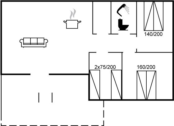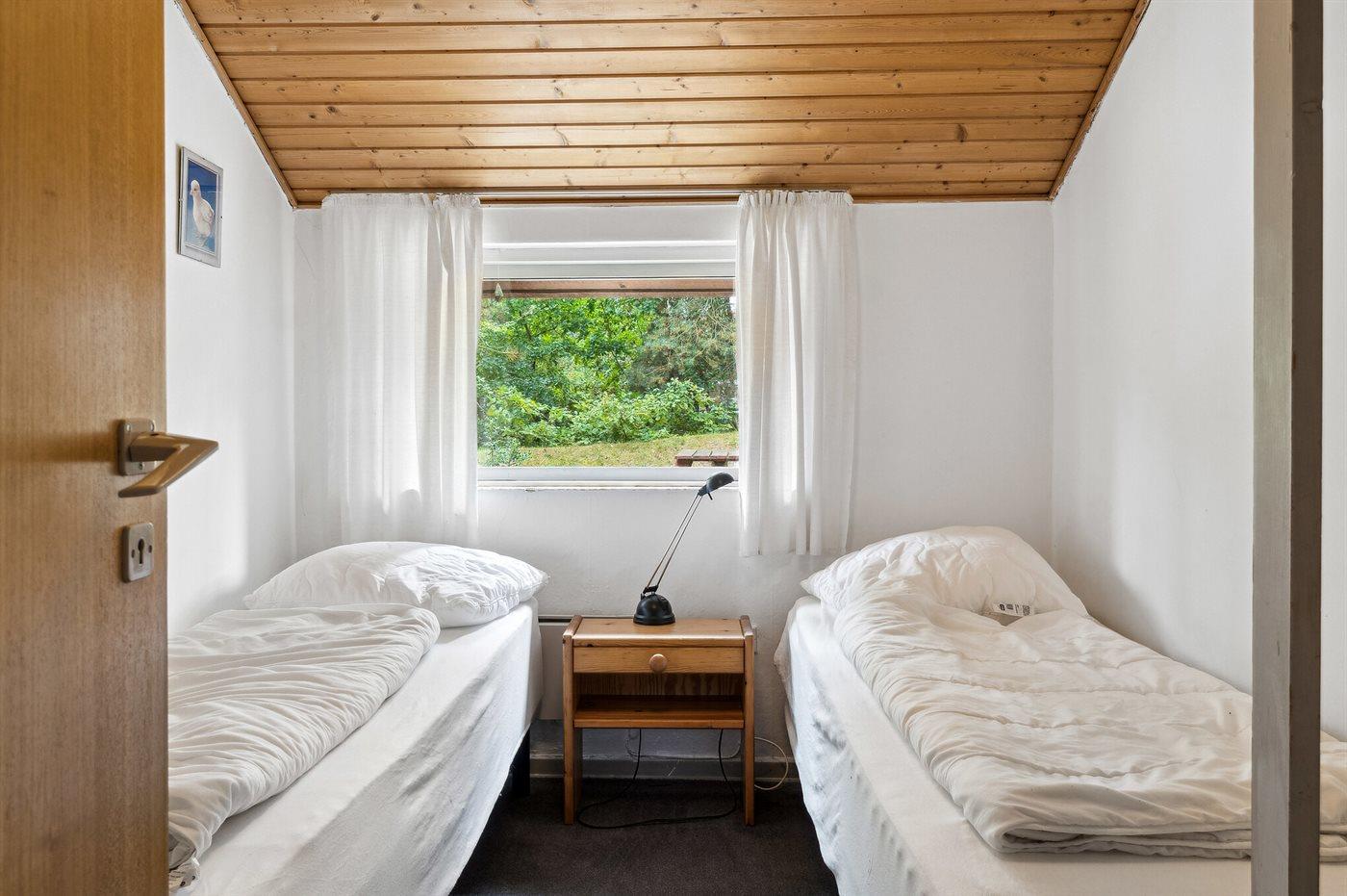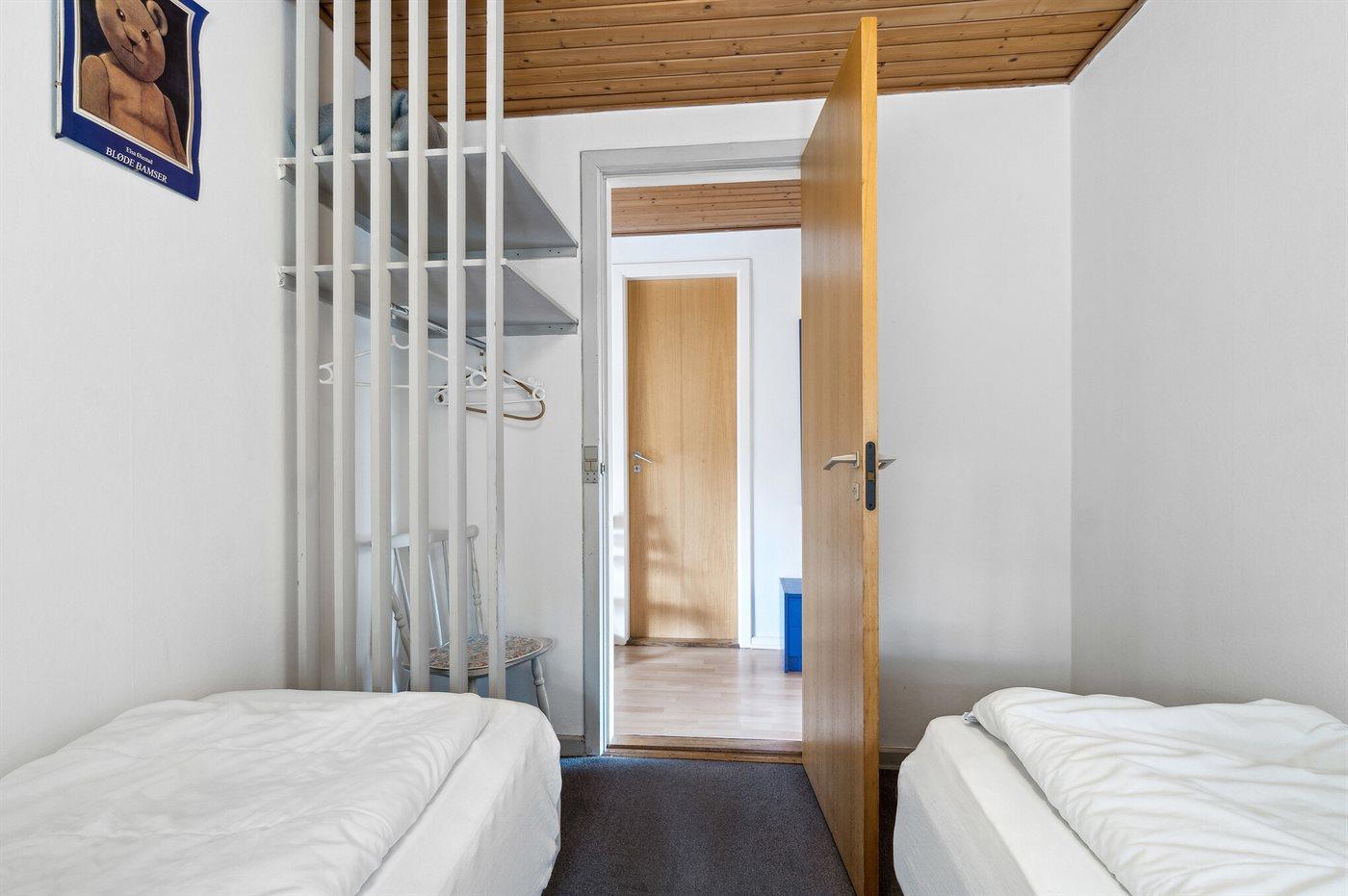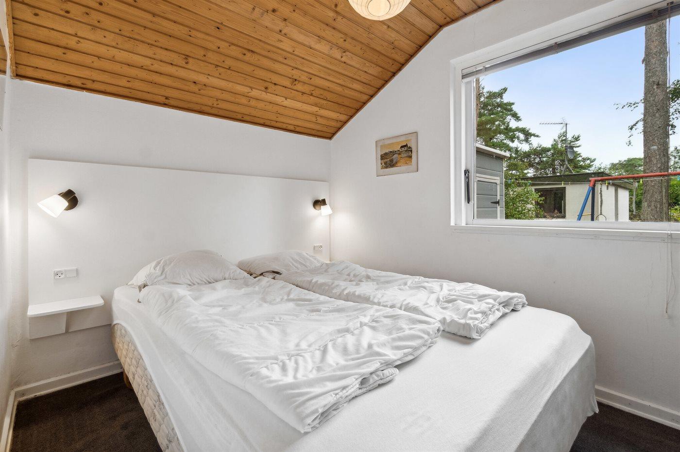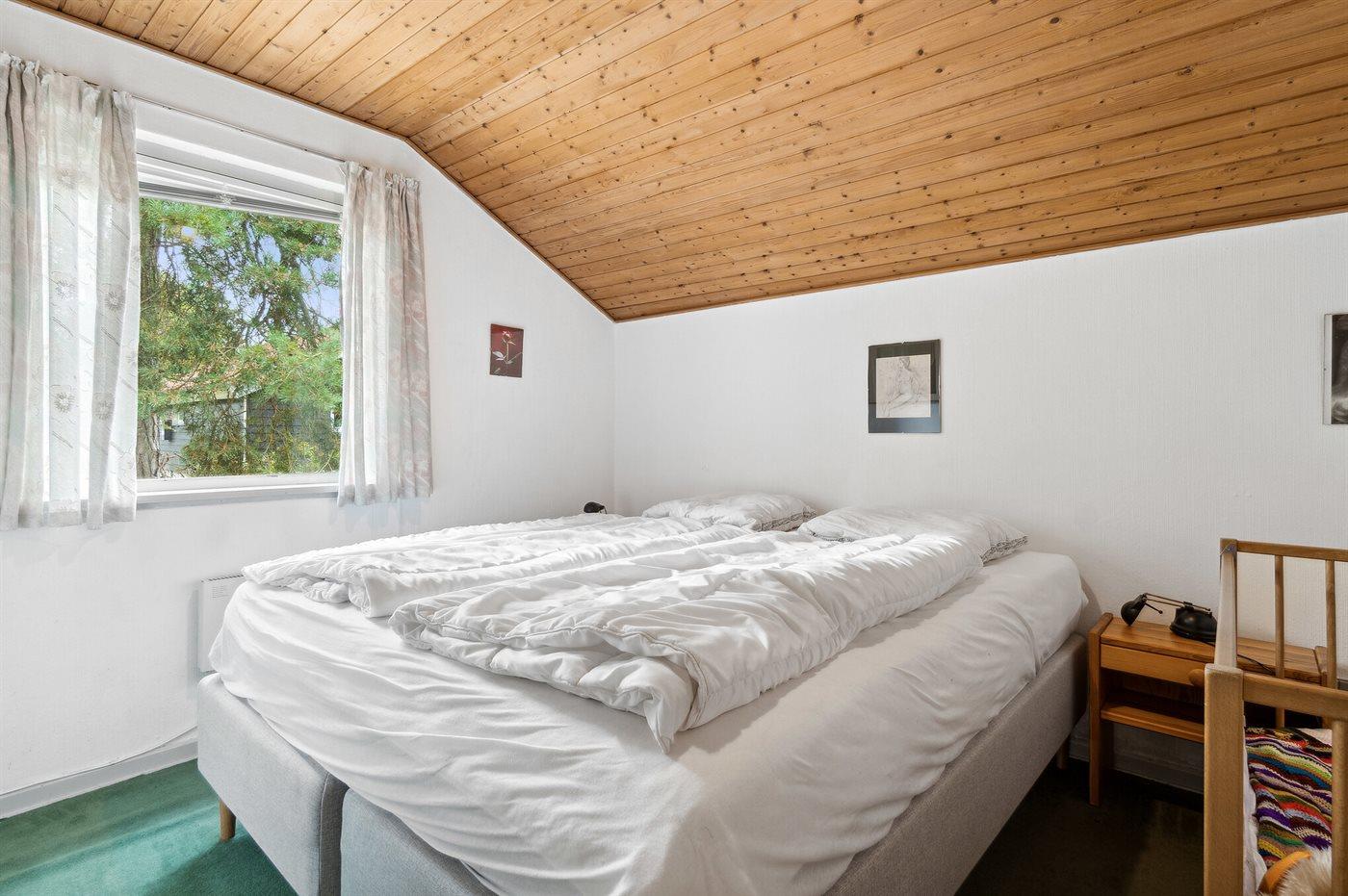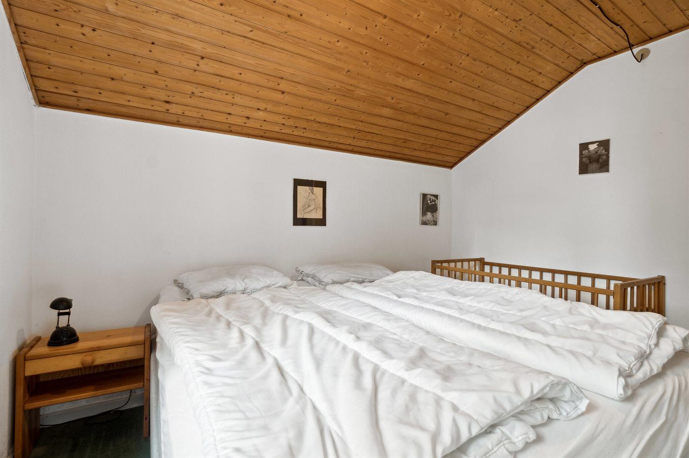Der er i alt 3 soveværelser. Sovepladserne fordeler sig på: 4 sovepladser i dobbeltsenge. 2 sovepladser i enkeltsenge. Derudover er der 1 stk. barneseng.