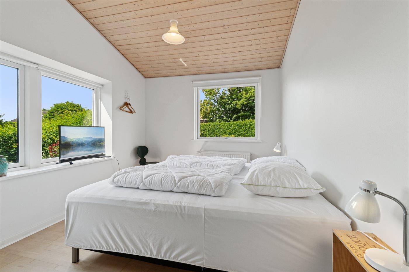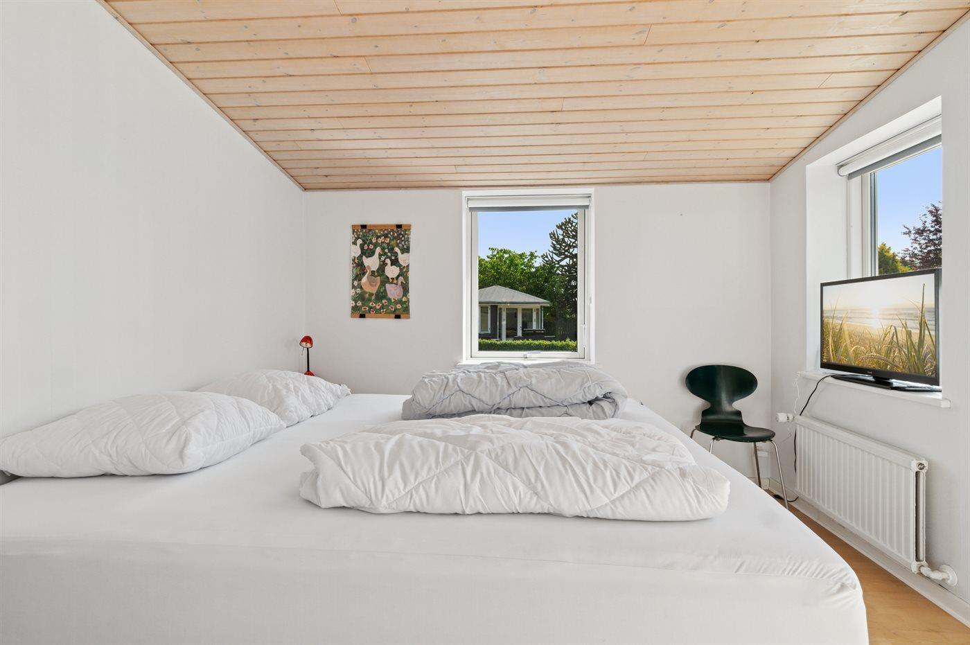 Der er i alt 3 soveværelser. Sovepladserne fordeler sig på: 6 sovepladser i dobbeltsenge. 1 soveplads i sovesofa (enkelt). 2 af disse sovepladser befinder sig i anneks, og 1 soveplads findes i sommerhusets stue.