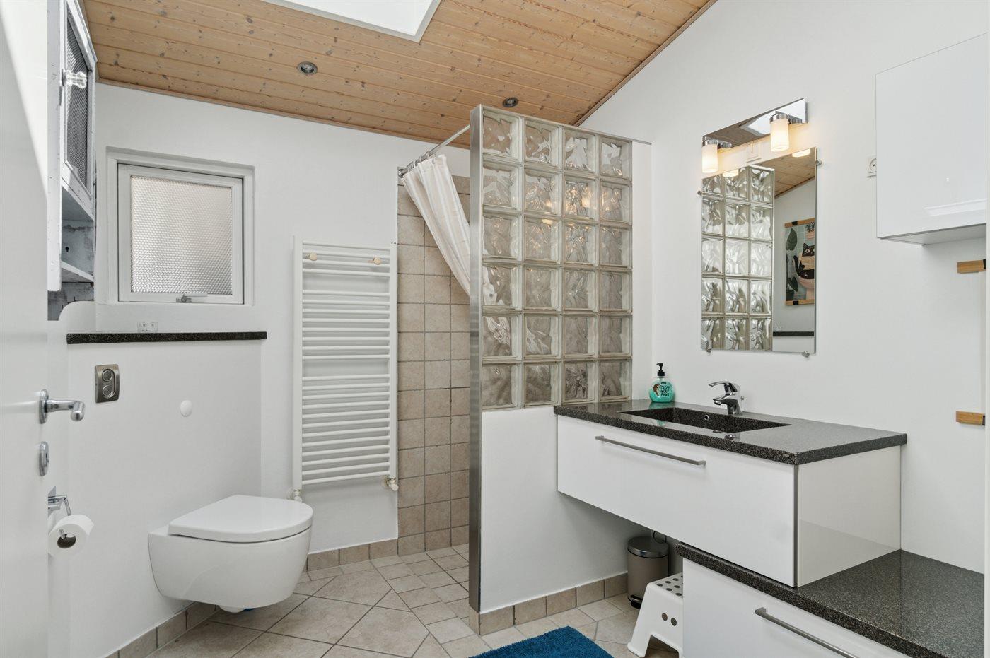 Der er 1 badeværelse med bruseniche og 1 toilet.. Der er gulvvarme på 1 badeværelse.