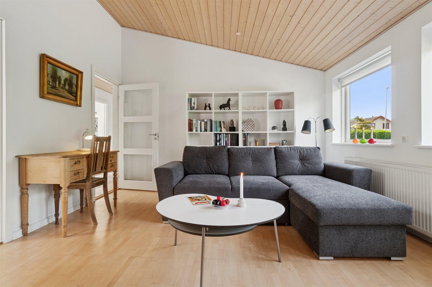 Huset fremstår pænt og nydeligt med en større grund, der er omkranset af hæk og hegn. Indvendig er sommerhuset lyst med hvide vægge og lyse lofter. Pæn og ordentlig møblering - hyggelig indretning, hvor man kan nyde sin ferie i rolige rammer. Køkken og bad fremstår moderniseret og med god plads. Ovenlysvinduet i køkkenet giver et godt arbejdslys, når feriemaden skal forberedes til familien. I bryggerset er der god plads til opbevaring og praktiske gøremål. Gode senge i soveværelserne betyder en god nats søvn - også det er der tænkt på.