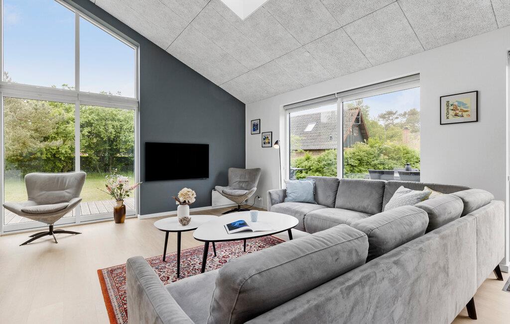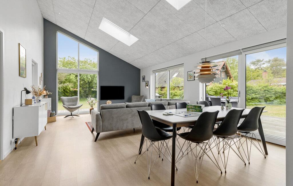 Tag familien under armen og rejs til Bornholm, hvor I få minutters gang fra stranden får base i dette flotte og moderne feriehus. Indvendigt emmer det af kvalitet over hele linjen med gode indretningsløsninger, komfortable møbler og store vinduespartier, der giver dejlige lysindfald og en skøn udsigt til haven. Lad børnene lege og bygge hule på hemsen, mens kokkene kræser om livretterne i det veludstyrede køkken efter en aktiv feriedag. Nyd måltiderne ved spisebordet med udsigt til det grønne, inden I runder en dejlig dag af med brætspil eller en film i sofaen til langt ud på aftenen.