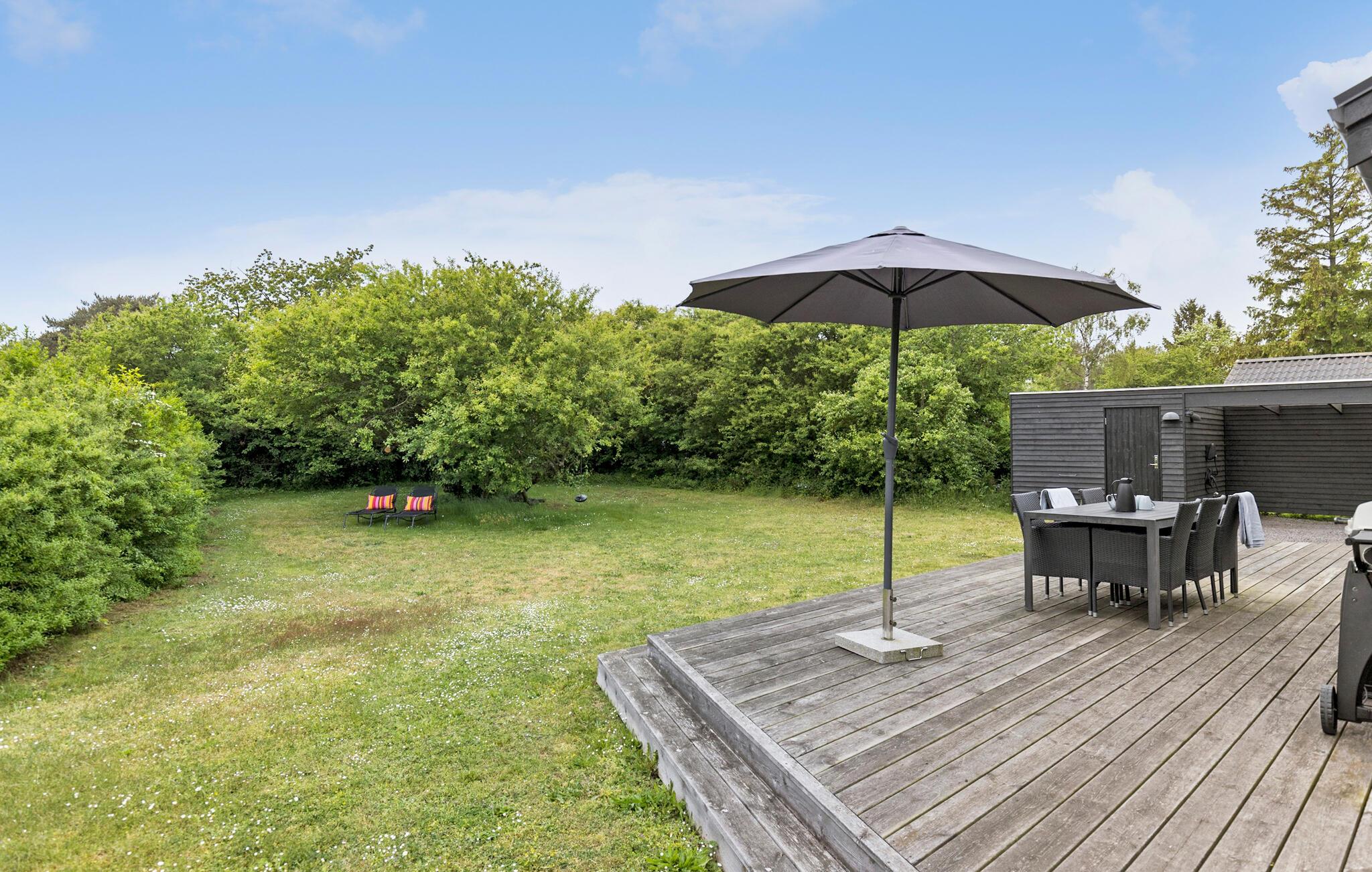 På de varme dage kan I nyde vejret og den friske luft på den skønne træterrasse, der løber om flere sider af huset, så I kan finde sol, skygge og læ efter behov. Lad børnene lege og spille bold i haven, tænd op i grillen ud på eftermiddagen og lad en smuk sommerdag gå på hæld med gode bøffer og grillspyd under aftensolen.