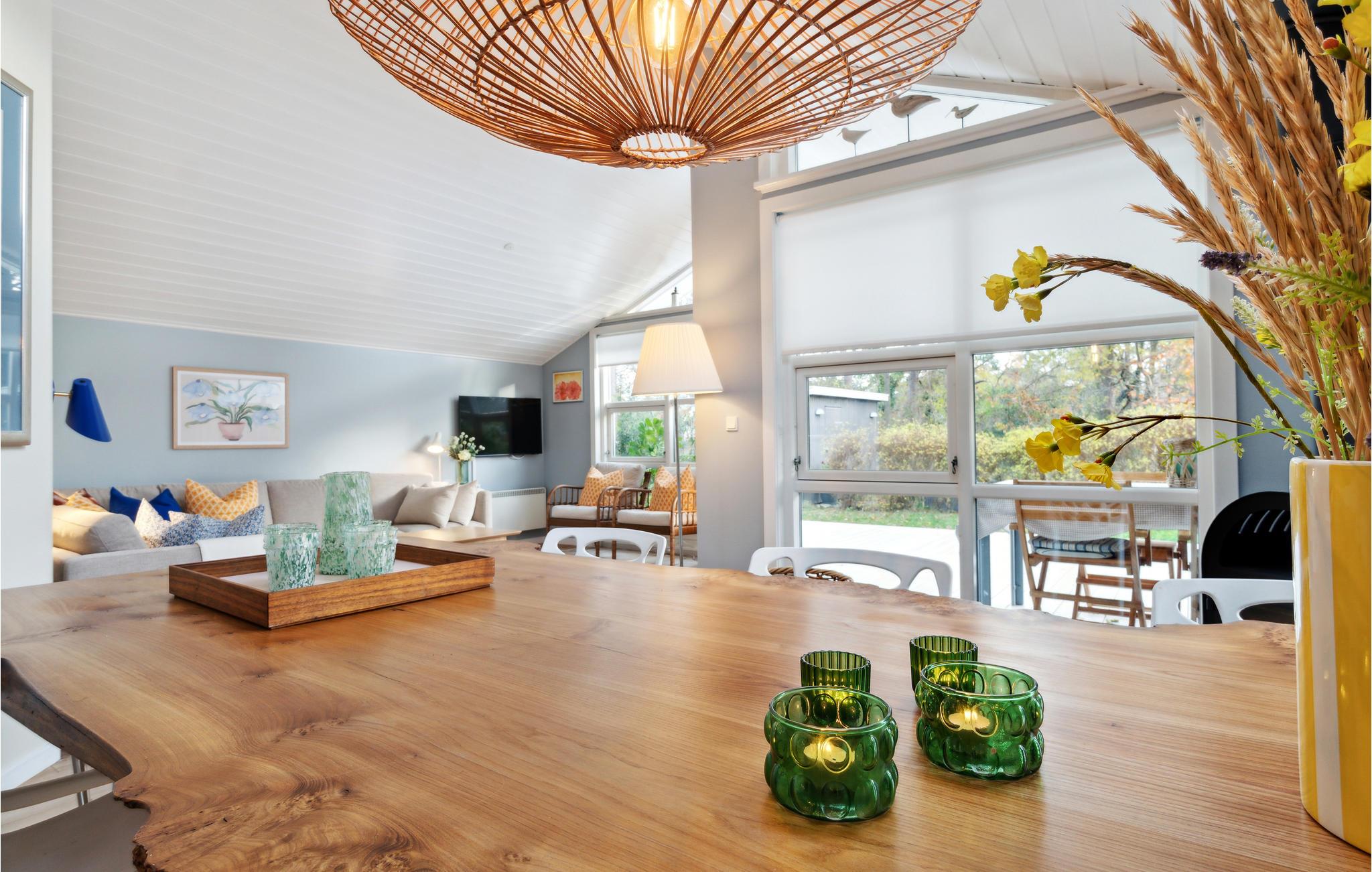 Glæd jer til en afslappende ferie i dette skønne og komfortable hus. Indenfor byder en lys og venlig atmosfære jer velkommen, suppleret med nøje udvalgt indretning og dejlige møbler. Huset byder på en god åben planløsning, så I har masser af plads i opholdsrummet til at lave mad, spille spil eller smække fødderne op i sofaen. I kan også slappe af i spabadet på badeværelset, hvor I kan nyde en stille stund med wellness. Træd ud på den store hvide træterrasse, som ikke bare er et blikfang, men også byder på hyggekroge, hvor I kan trække jer tilbage med en bog eller bare nyde solen. Slut de lune sommerdage af med en lækker grillbuffet og planlæg jeres kommende udflugter og aktiviteter. Haven er også et skønt sted for jeres børn. I morgen kan I gå til den skønne Balka strand, der lokker med en næsten sydlandsk stemning. Nyd den næsten caribiske følelse og dyk ned i det friske vand.