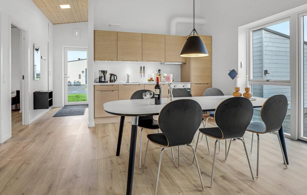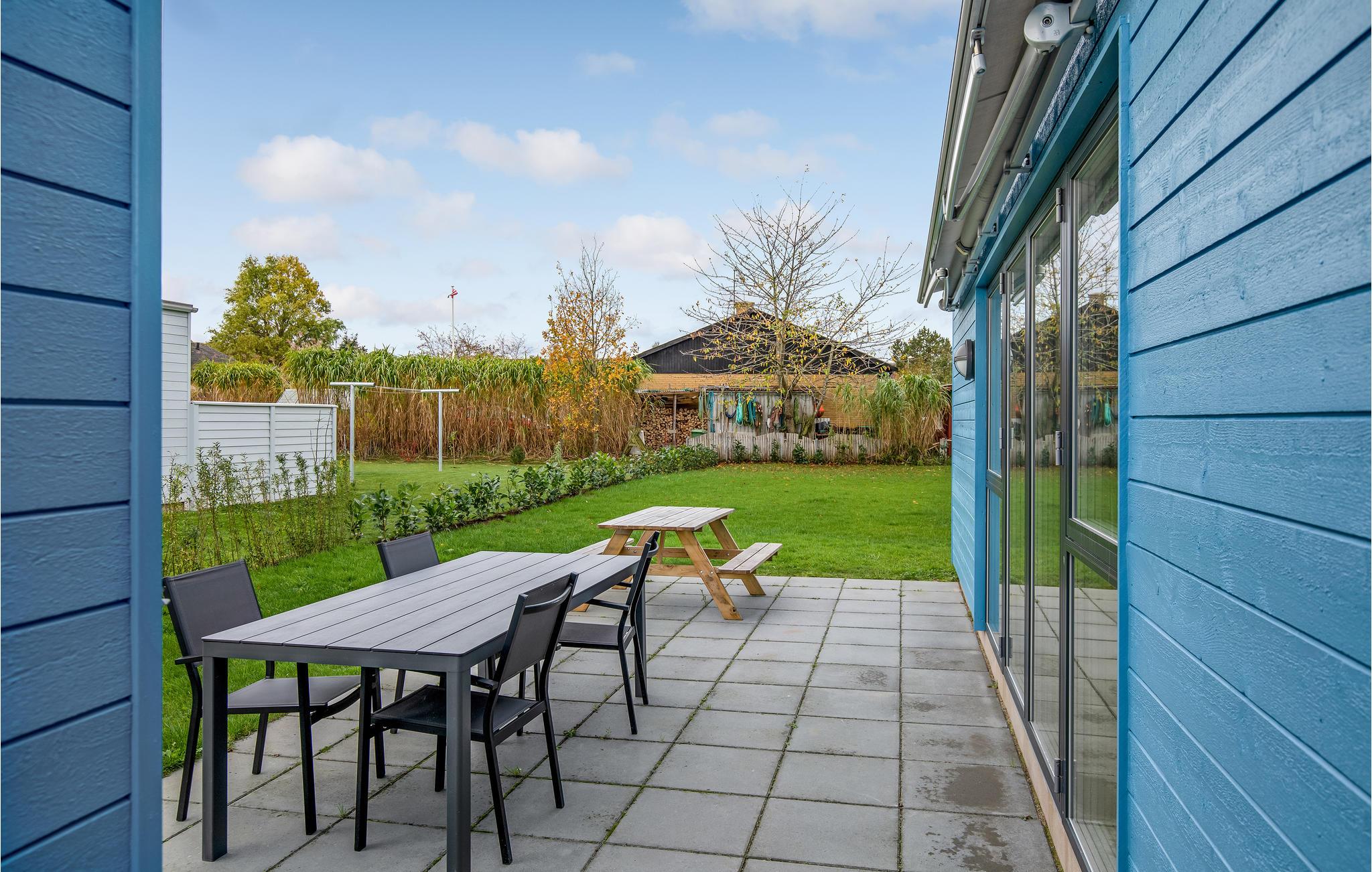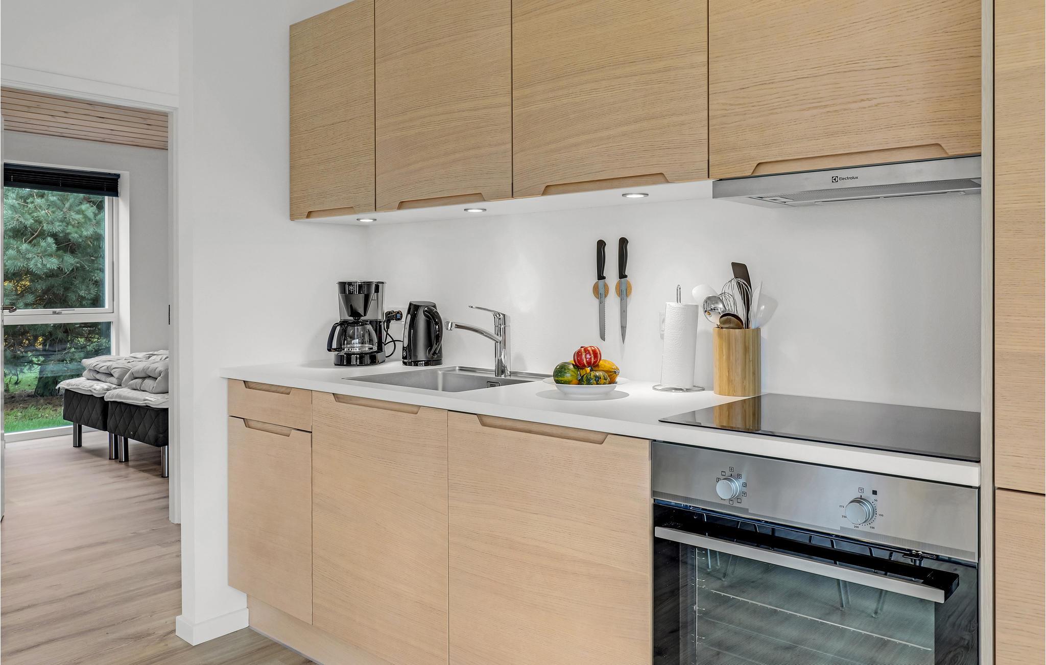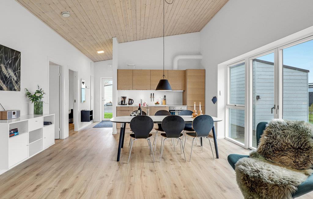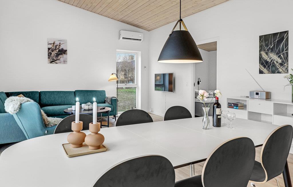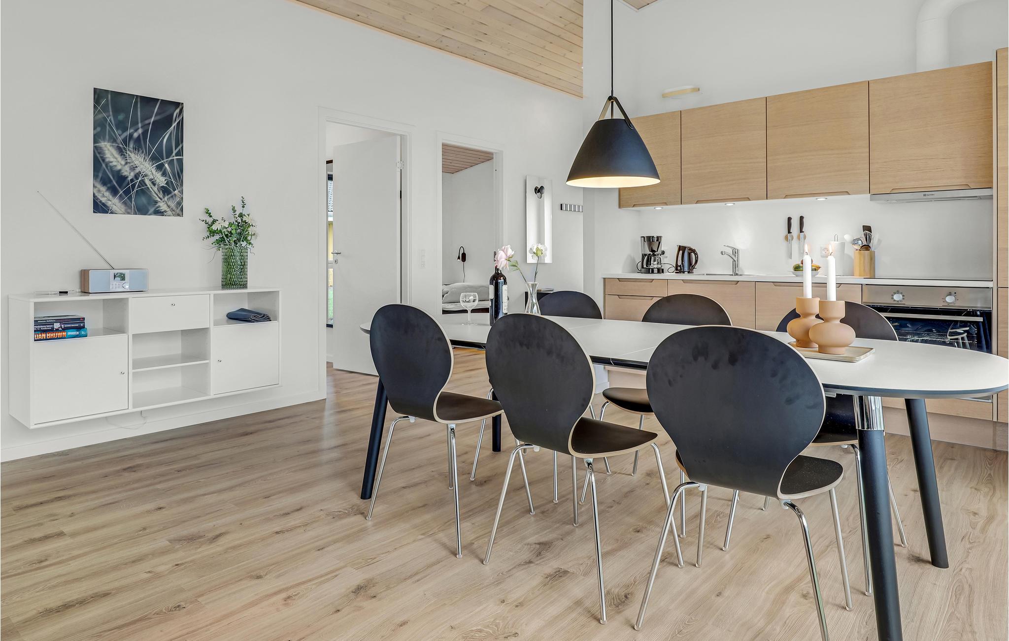 Det er et skønt sommerhus med moderne interiør og gode opvarmningskilder, der sikrer et behageligt indeklima. Glæd jer til nogle hyggelige dage, hvor I kan sammensætte salater i det veludstyrede køkken og derefter sætte jer ud på terrassen og nyde en sommeraften med sol og læ. På ekstra varme dage kan I søge skygge under den elektriske markise. Der er hele tre soveværelser, så huset er godt indrettet til seks gæster. Hver dag leverer solpaneler på taget grøn strøm, der holder el-forbruget nede.