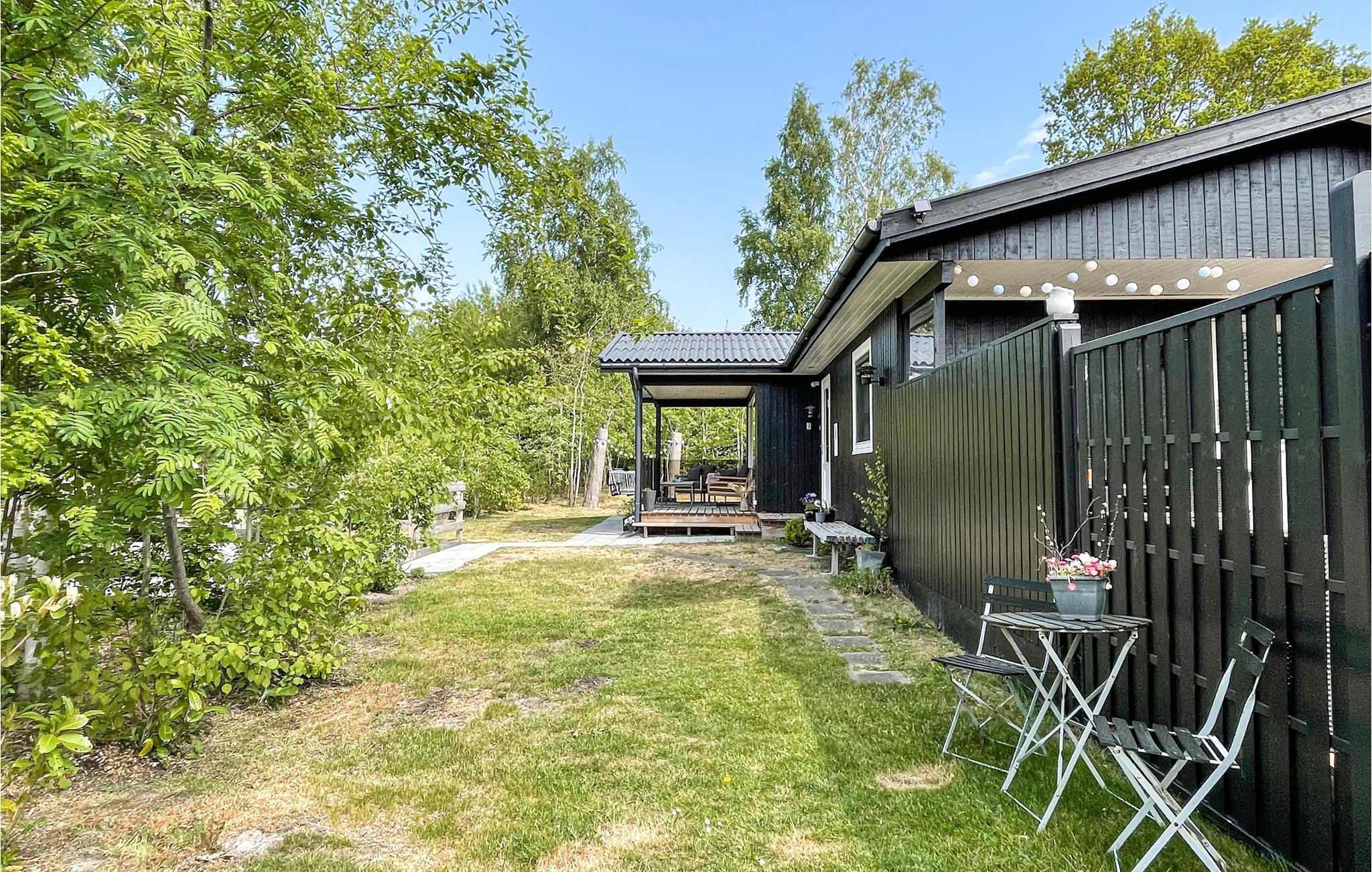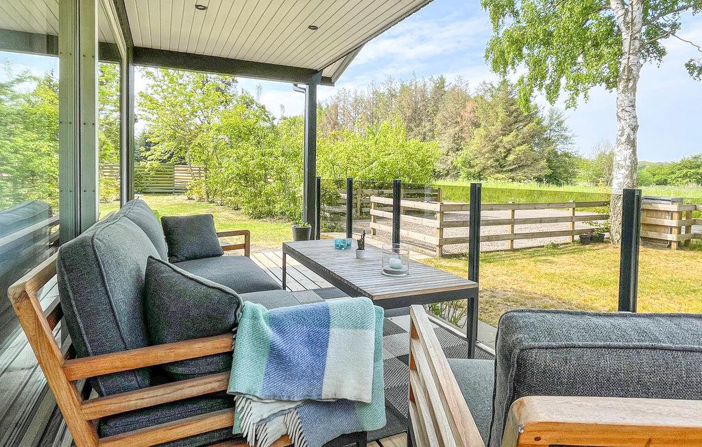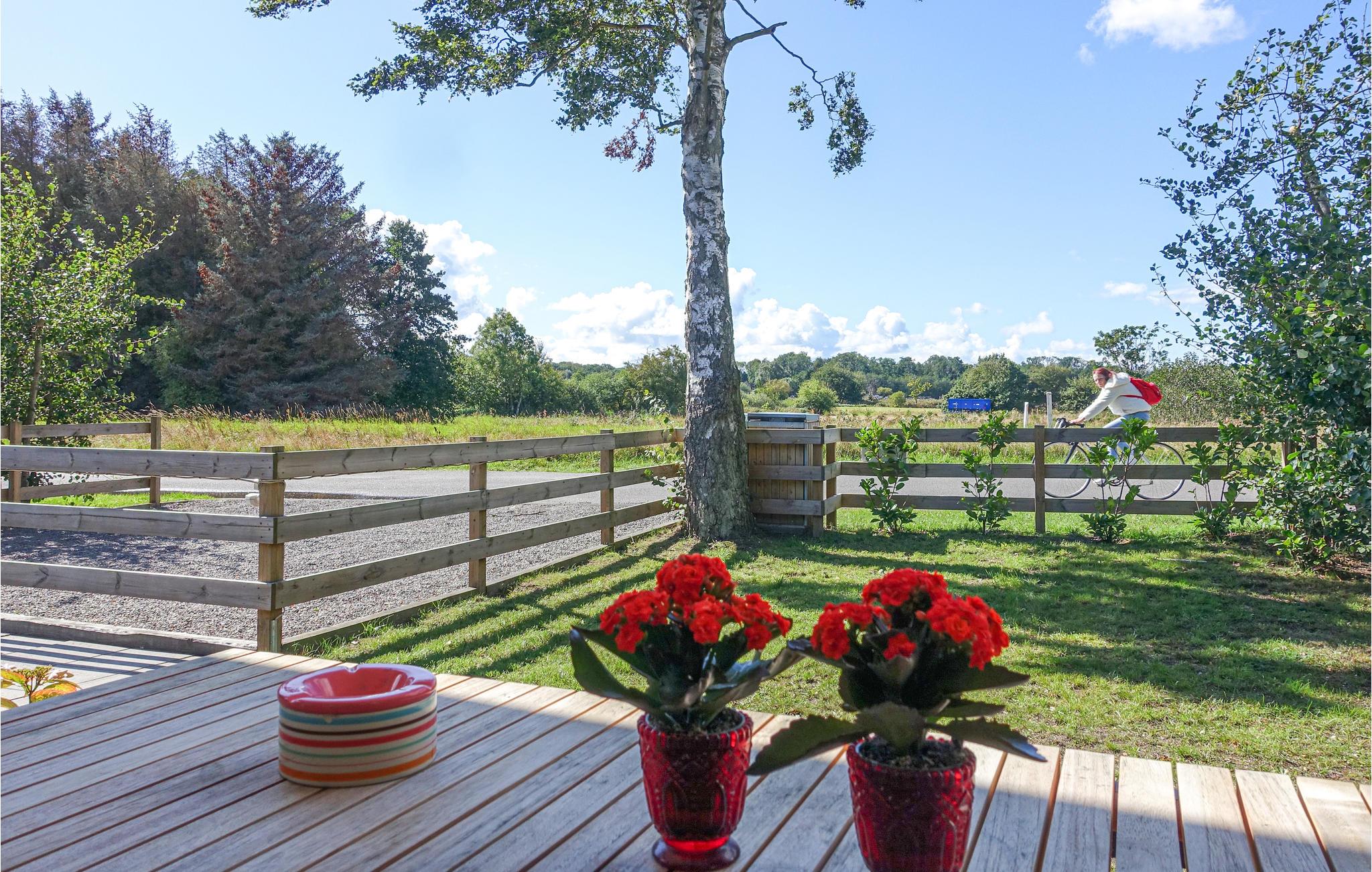 Annekset har udgang til en overdækket, sydvestvendt træterrasse med komfortable havemøbler og en grill til hyggelige grillaftener. Der er også en større, delvist overdækket og sydvendt træterrasse med havemøbler til jeres rådighed. I det hele taget er der virkelig mange forskellige hyggekroge udenfor, så I altid har et rart sted at sidde, dér hvor solen skinner (eller ikke skinner, hvis I foretrækker skygge!). Børnene vil elske udendørslivet her, for der er nemlig både gynger m. klatretårn, en sandkasse og flere udendørsspil, de kan underholde sig med.