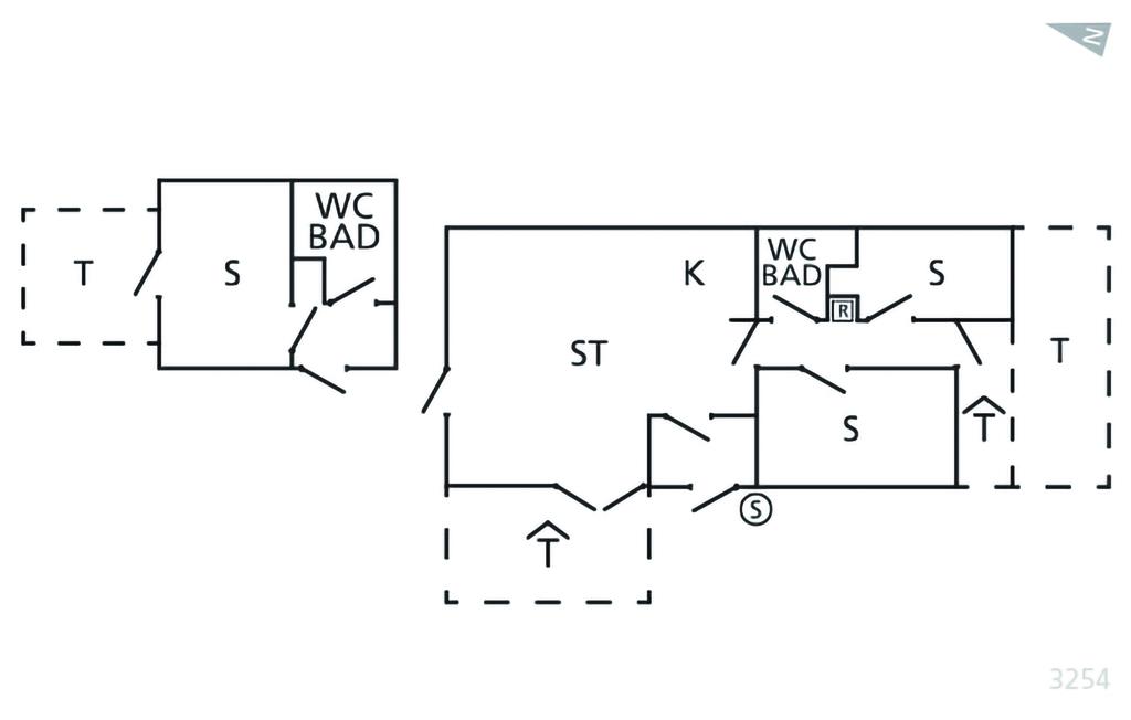Soveværelse (nr. 1) - 1 Soveplads. (Enkeltseng(e)). 2 Sovepladser. (Dobbeltseng(e)).