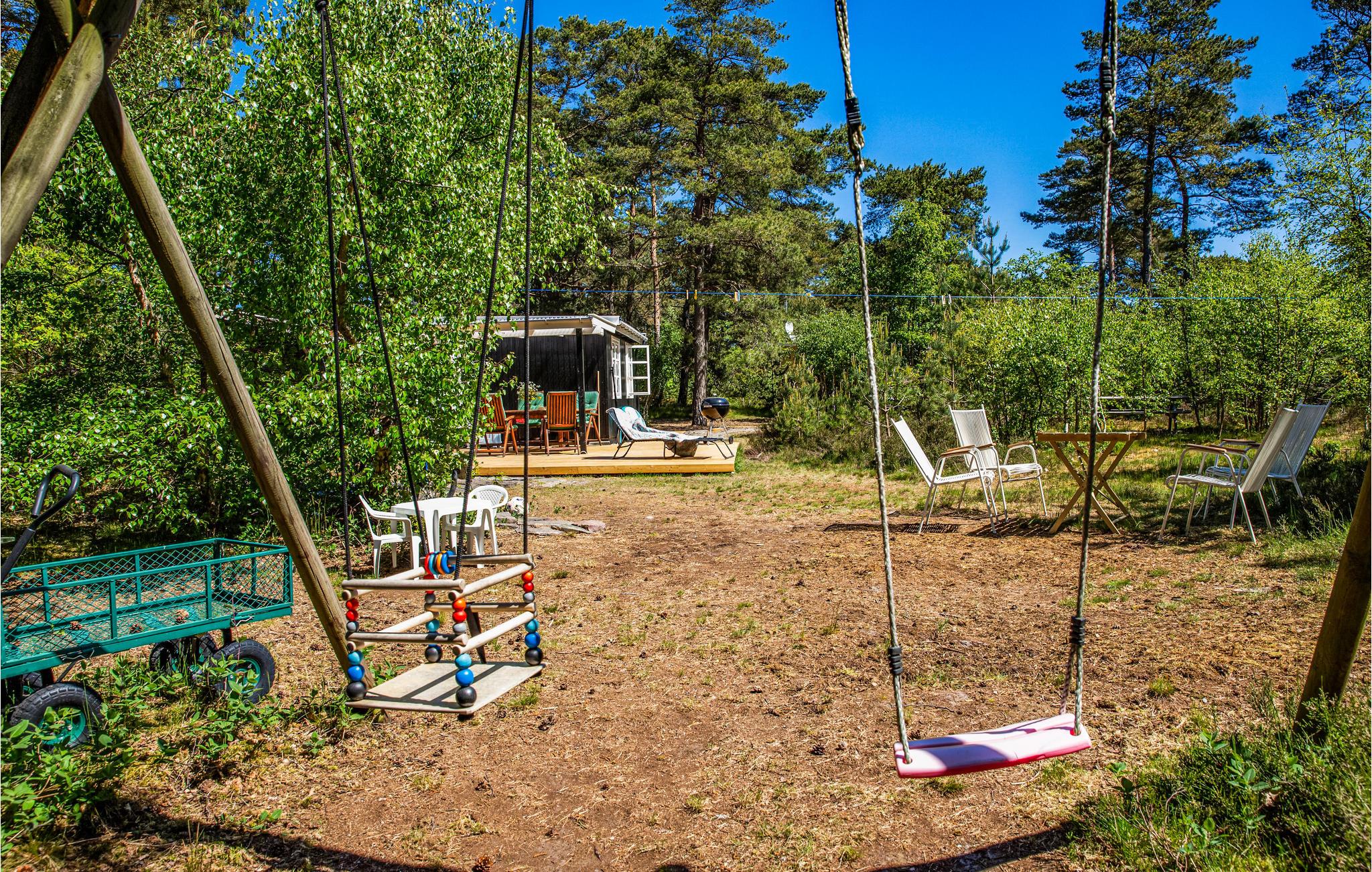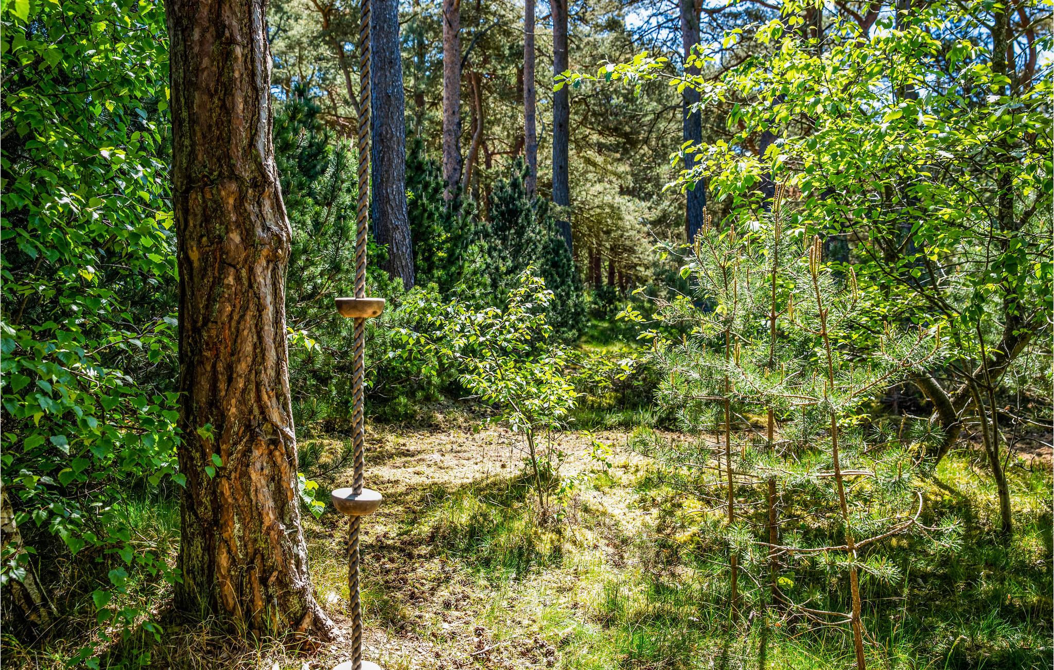 Når vejret er lunt, kan I rykke selskabet ud på den store terrasse med havemøbler og grill, hvor I både finder sol og skygge. Rundt om huset er der en dejlig grund, hvor I kan lytte til fuglefløjt og nyde freden og roen. Børnene kan indrette butik i legehuset eller svinge sig i gyngerne eller klatretovet.