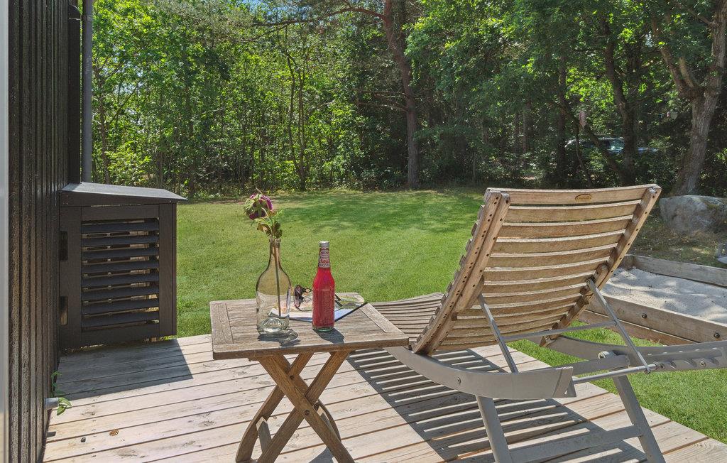 Udendørs kan I finde en plads på en af de solrige træterrasser, hvor der er havemøbler, pejs og grill, så her kommer I til at bruge en god del af jeres timer i sommerhalvåret. Børnene kan lege i sandkassen og løbe ettagfat på den store græsplæne.
