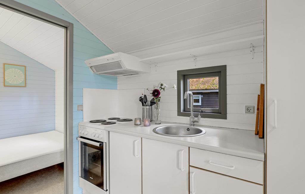 Hytten er velindrettet med plads til fire personer. Der venter et hjemligt interiør i skandinavisk stil med åbent køkken, hvor I finder alt det udstyr, I skal bruge. Tag en kop kaffe og sæt jer i det hyggelige opholdsrum eller find en stol på den solrige terrasse.