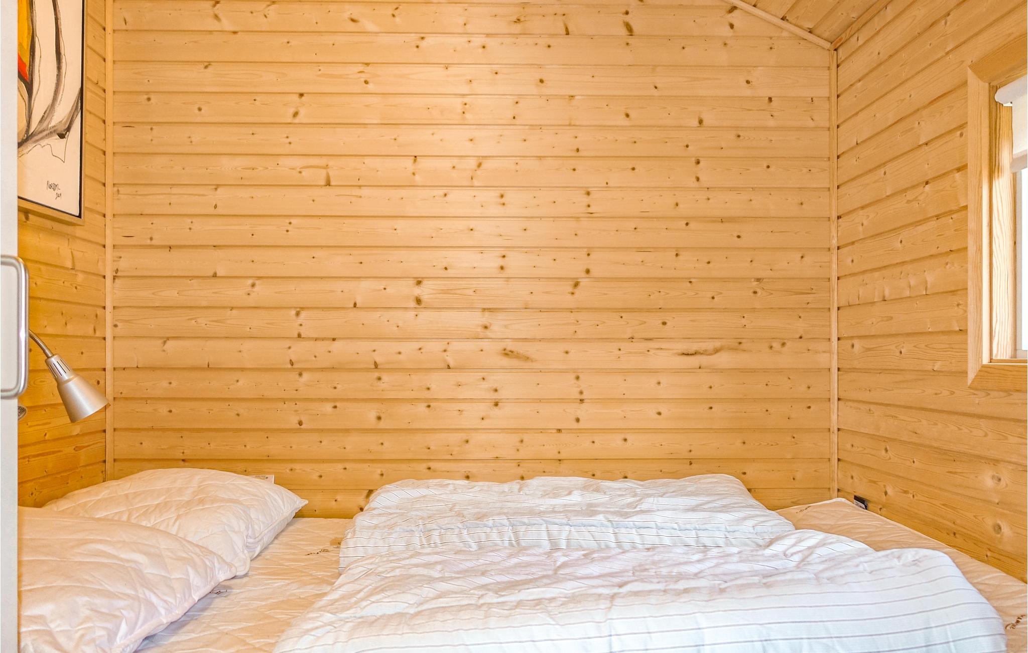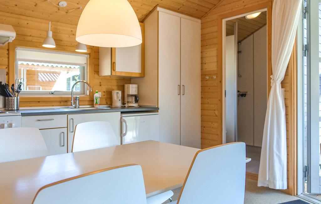 Hytten er velindrettet med plads til fem personer. Der venter et hjemligt interiør i skandinavisk stil med åbent køkken, hvor I finder alt det udstyr, I skal bruge. Tag en kop kaffe og sæt jer i det hyggelige opholdsrum eller find en stol på den solrige terrasse. Sovepladserne fordeler sig over en dobbeltseng, en køjeseng og en enkeltseng.