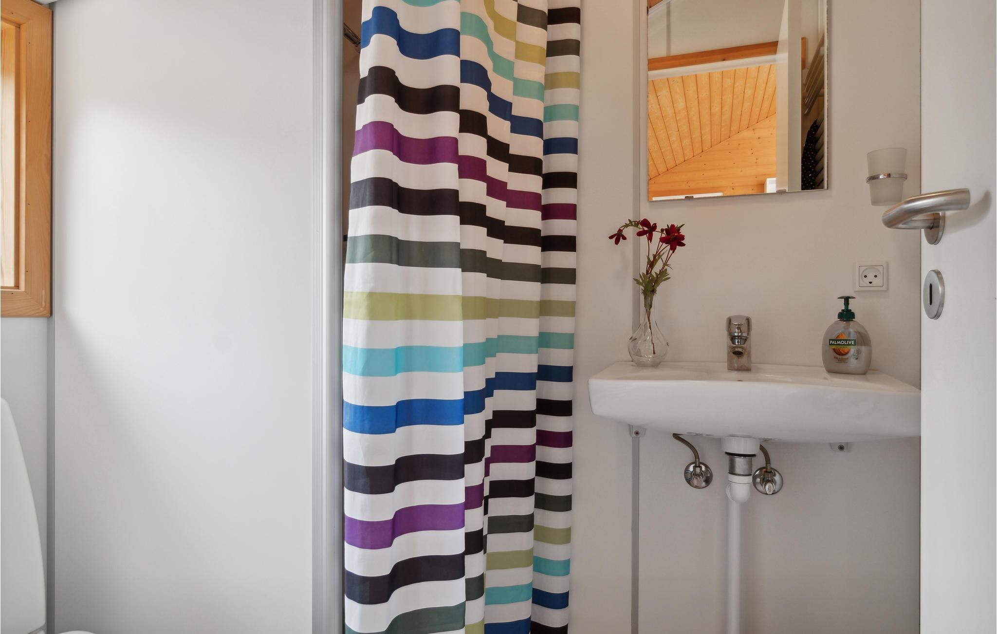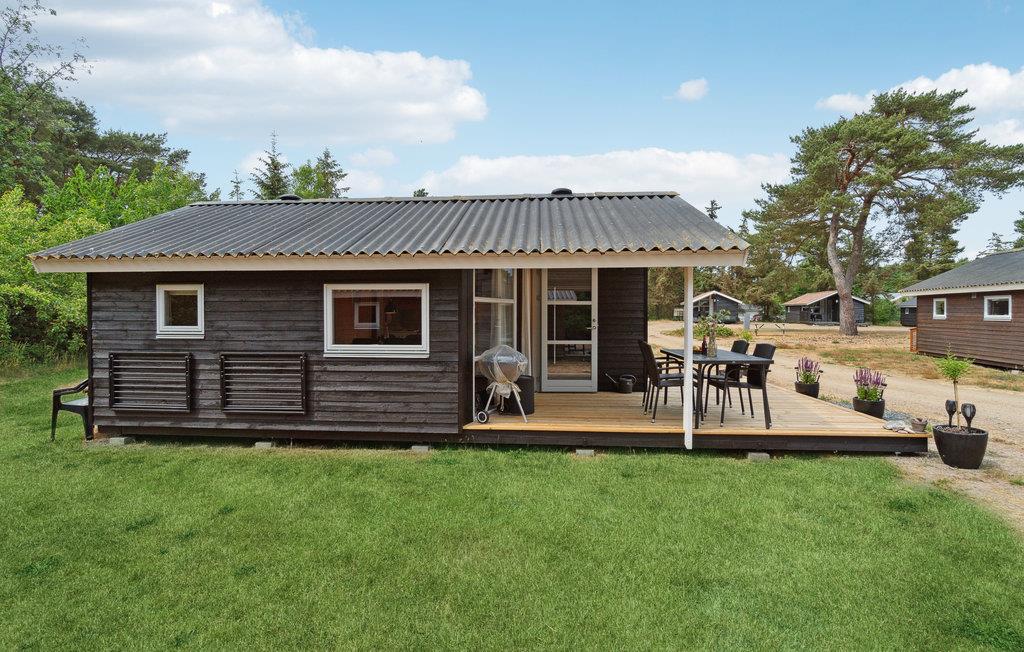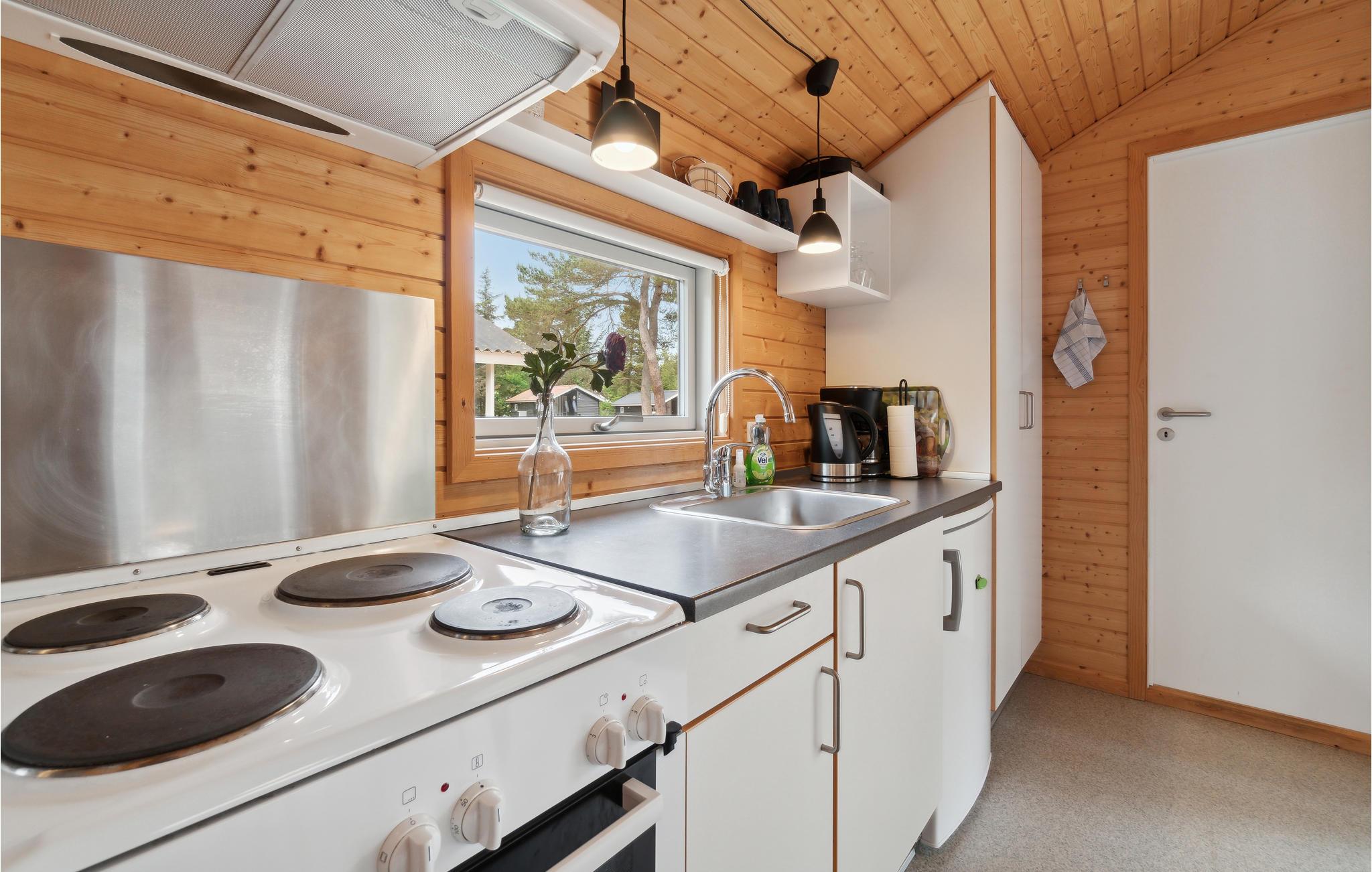 Hytten er velindrettet med plads til fem personer. Der venter et hjemligt interiør i skandinavisk stil med åbent køkken, hvor I finder alt det udstyr, I skal bruge. Tag en kop kaffe og sæt jer i det hyggelige opholdsrum eller find en stol på den solrige terrasse. Sovepladserne fordeler sig over en dobbeltseng, en køjeseng og en enkeltseng.