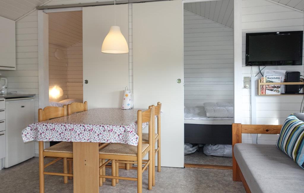 Hytten er velindrettet med plads til fire personer. Der venter et hjemligt interiør i skandinavisk stil med tekøkken. Tag en kop kaffe og sæt jer i det hyggelige opholdsrum eller find en stol på den solrige terrasse.