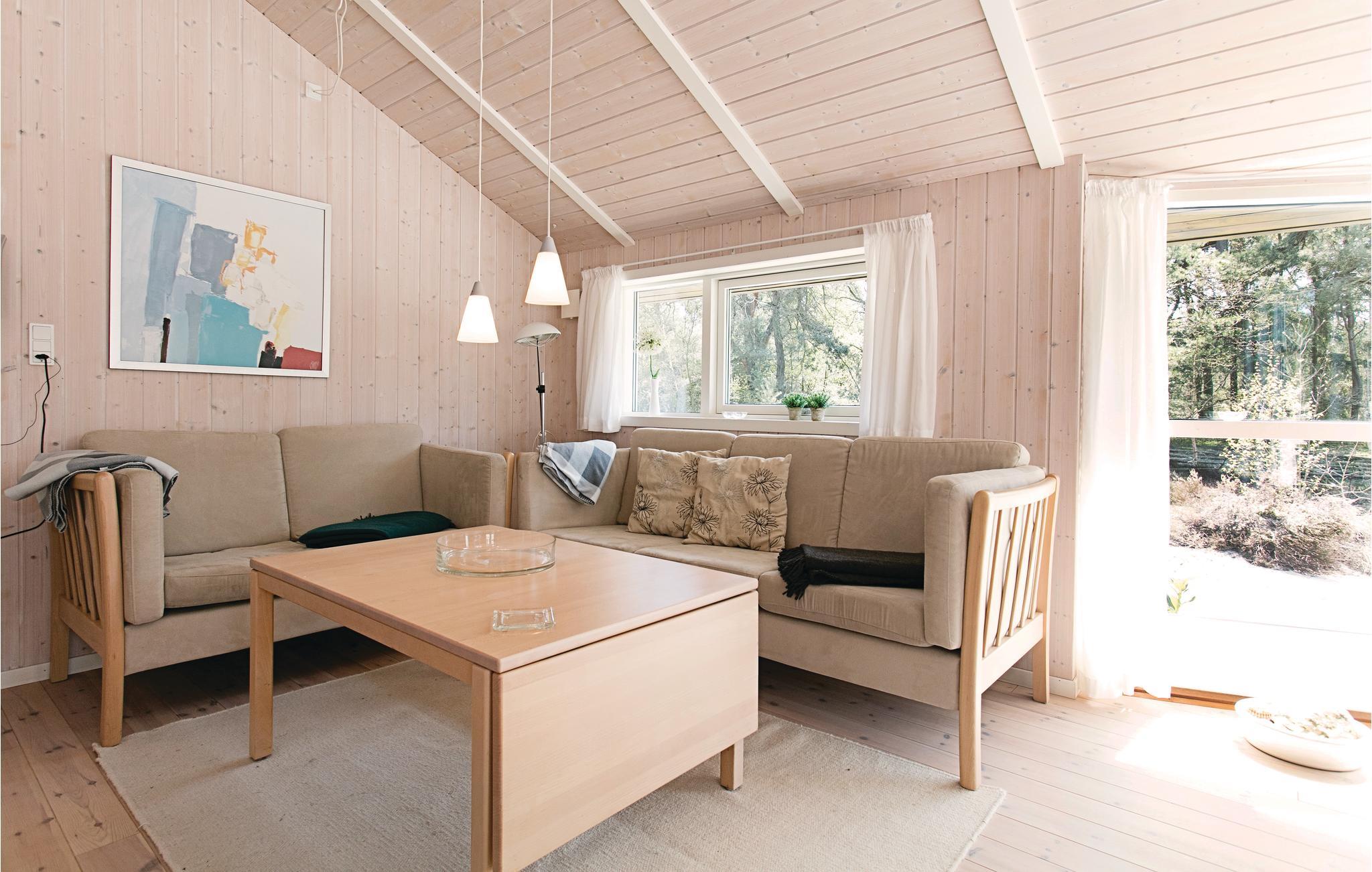 Velholdt træferiehus med lys og moderne indretning beliggende på en god naturgrund. Huset har en hyggelig, kombineret opholds- og spisestue samt et mindre, åbent køkken. Til huset hører en stor terrasse, hvor mange feriestunder kan nydes. I har gratis internet i sommerhuset via et mobilt bredbånd. Fra feriehuset kan man gå ned til en dejlig sandstrand og der er heller ikke langt til det hyggelige fiskerleje, Snogebæk, der byder på røgeri, små restauranter, butikker og cafeer. Feriehuset ligger ud til en mindre vej, som om sommeren ofte bruges af cyklister og bag denne vej ligger landevejen. Her er tale om et godt og komfortabelt feriehus beliggende i et dejligt og velkendt sommerhusområde.