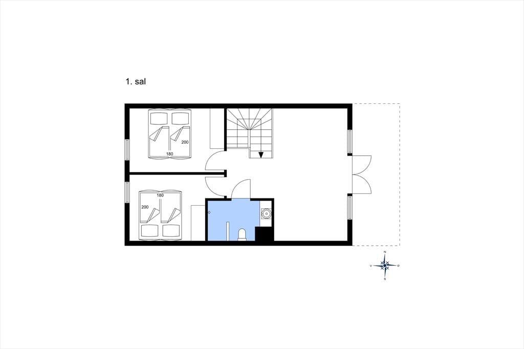 På 1. sal er endnu et dejligt opholdsrum, hvor hyggen og den fantastiske udsigt er i centrum. Det store gulv til loft vindue mod øst lader lyset og den flotte havudsigt strømme helt ind i rummet. I dette dejlige samlingsrum kan du slænge dig i sofaen og nyde udsigten. Den hyggelige indretning sikrer, at I alle kan slappe af sammen og snakke om dagens oplevelser eller tænde for TV´et. Fra stuen er også en terrassedør ud til altanen, hvor du kan glæde dig til at nyde den helt særlige beliggenhed og udsigt fra første parket. På 1. salen er endnu to gode soveværelser med dobbeltsenge og et dejligt lysindfald. Værelserne er hyggeligt og stilfuldt indrettet. Mellem stuen og værelserne er yderligere et toilet, hvilket giver en ekstra komfort, når I er op til 8 gæster i huset.