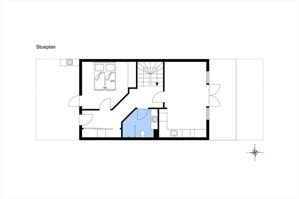 Denne feriebolig er et lyst og dejligt hus at opholde sig i, det mærker du med det samme, du træder ind ad døren. Huset er i to etager, og på begge etager er store vinduer vendt mod udsigten til havet. I stueetagen er husets entré og det første soveværelse, hvor der er plads til to personer samt god opbevaringsplads. Badeværelset er centralt i stueetagen, og som resten af huset er det lyst og funktionelt. I entréen finder I også vaskemaskine og tørretumbler, så praktikken er på plads, når I skal holde ferie her.