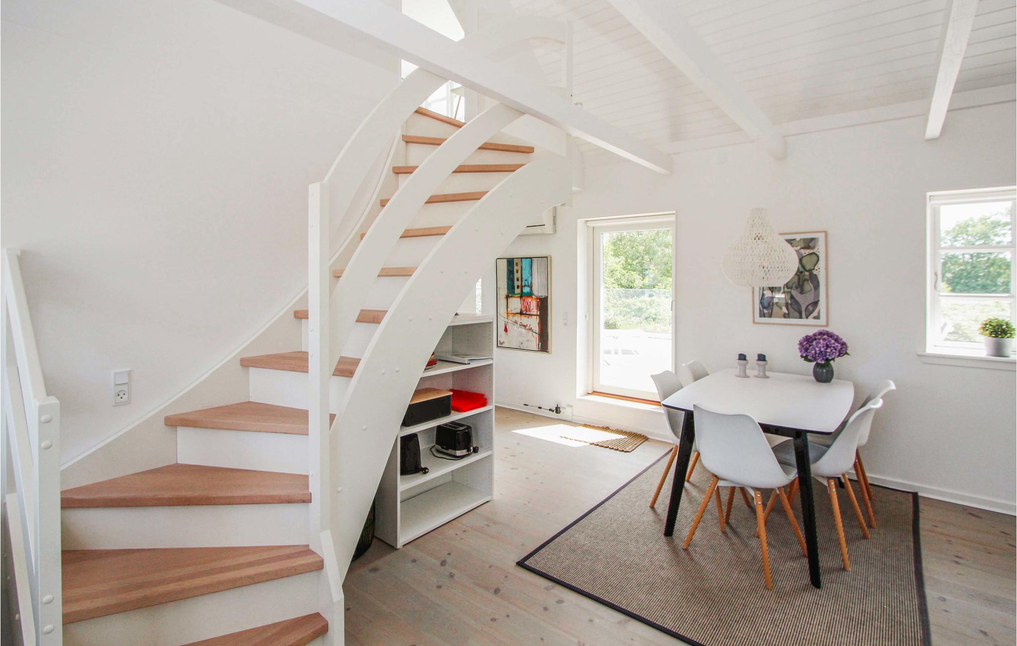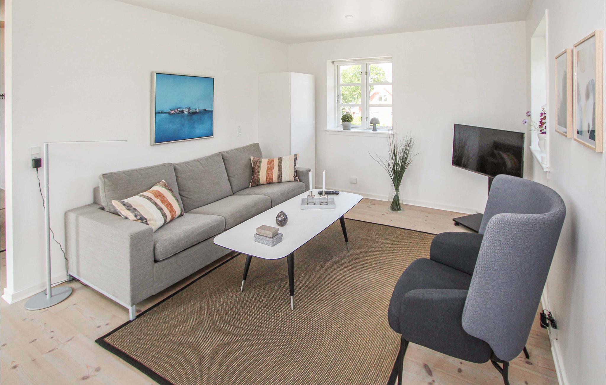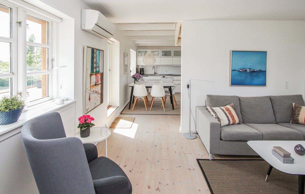 Lejligheden ligger i smukke omgivelser meget tæt på Ballen havn og en god badestrand. Boligen er fordelt over to etager, som er forbundet af en flot trappe. I kan se frem til en lys og stemningsfuld indretning og en minimalistisk, nordisk stil. På den store sydvendte terrasse kan I begynde dagen med en kop kaffe og nyde dagens første solstråler. Lad blikket vandre hen over den grønne natur - og mærk feriefreden sænke sig! Senere kan I læne jer tilbage i de behagelige liggestole og runde dagen af under åben himmel, mens I betragter den lange, lyse sommeraften. I bor desuden lige ud til en større golfbane, så det er oplagt at tage udstyret med på ferie og sætte nogle hyggelige timer af til jeres hobby.