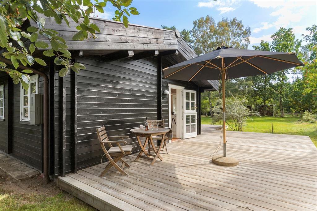 Udendørs venter en stor, velplejet grund, hvor børnene kan boltre sig på græsplænen, og de voksne kan nyde en god bog på terrassen. Haven byder også på ”vild med vilje”-områder, der trækker naturen tættere på. Der er flere terrasser omkring huset, alle udstyret med gode havemøbler og grill – og den overdækkede terrasse gør det muligt at spise ude, selv når duggen falder.