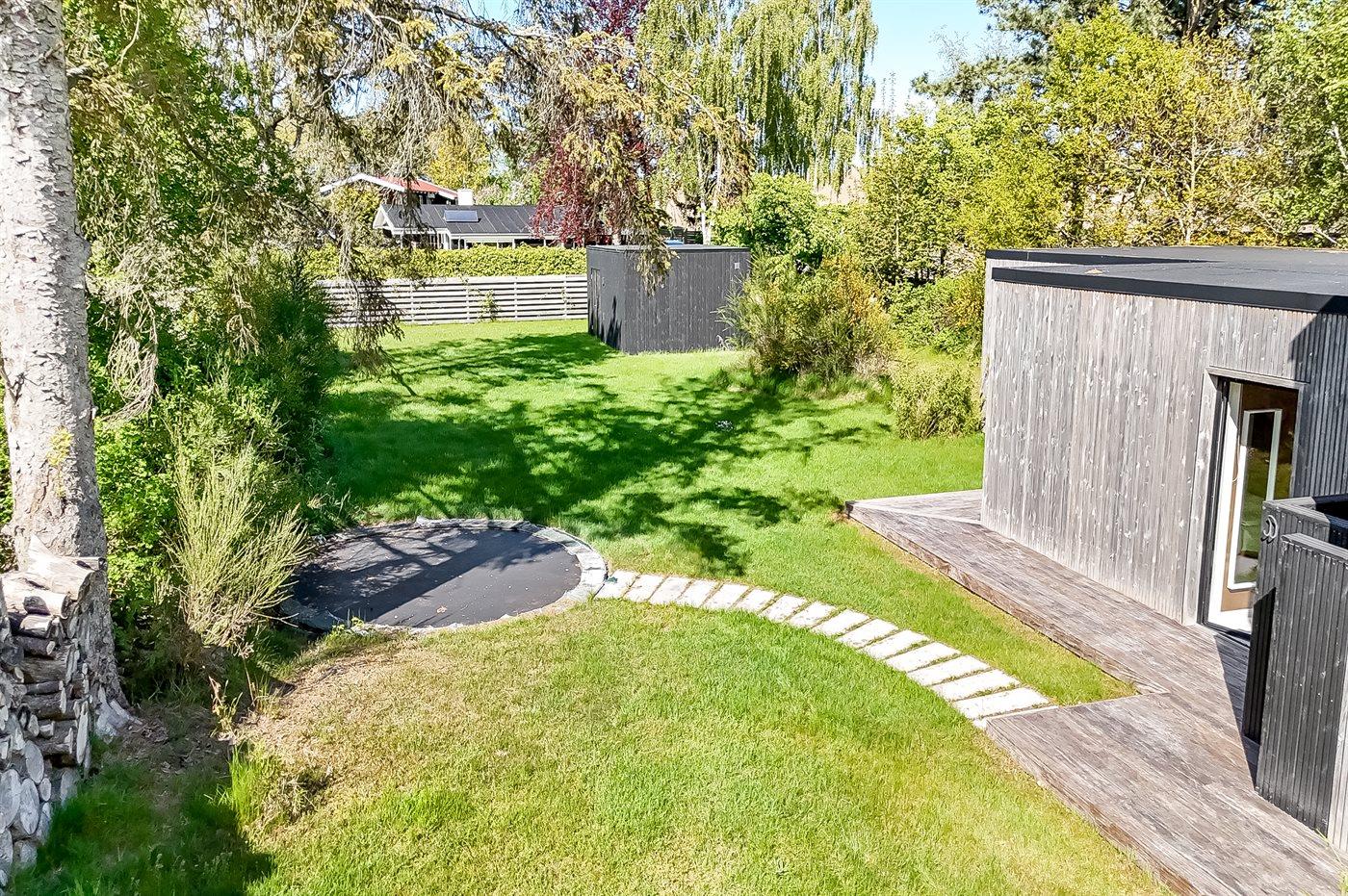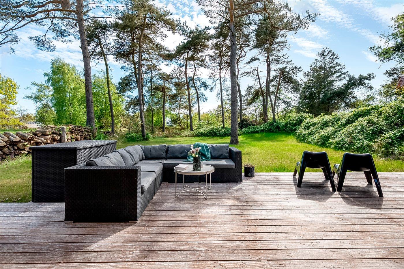 Ferieboligen er beliggende på en 2000 m² stor naturgrund. Der er 150 m til havet. Nærmeste forretning er beliggende i en afstand af 4000 m. Til ferieboligen hører 170 m² terrasseareal. Desuden er der 60 m² overdækket terrasse. Trampolin. Udendørs bruser. Der er carport til rådighed. Parkering ved ferieboligen.