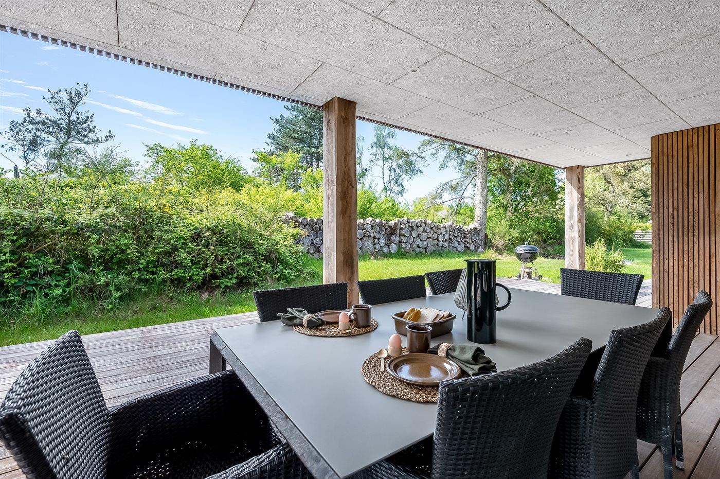 Helt nyt og eksklustivt sommerhus beliggende tæt på god og børnevenlig strand. Huset ligger meget flot og naturskønt. Huset har masser af spændende detaljer og her er der plads til at nyde ferien i perfekte omgivelser såvel inde som ude.