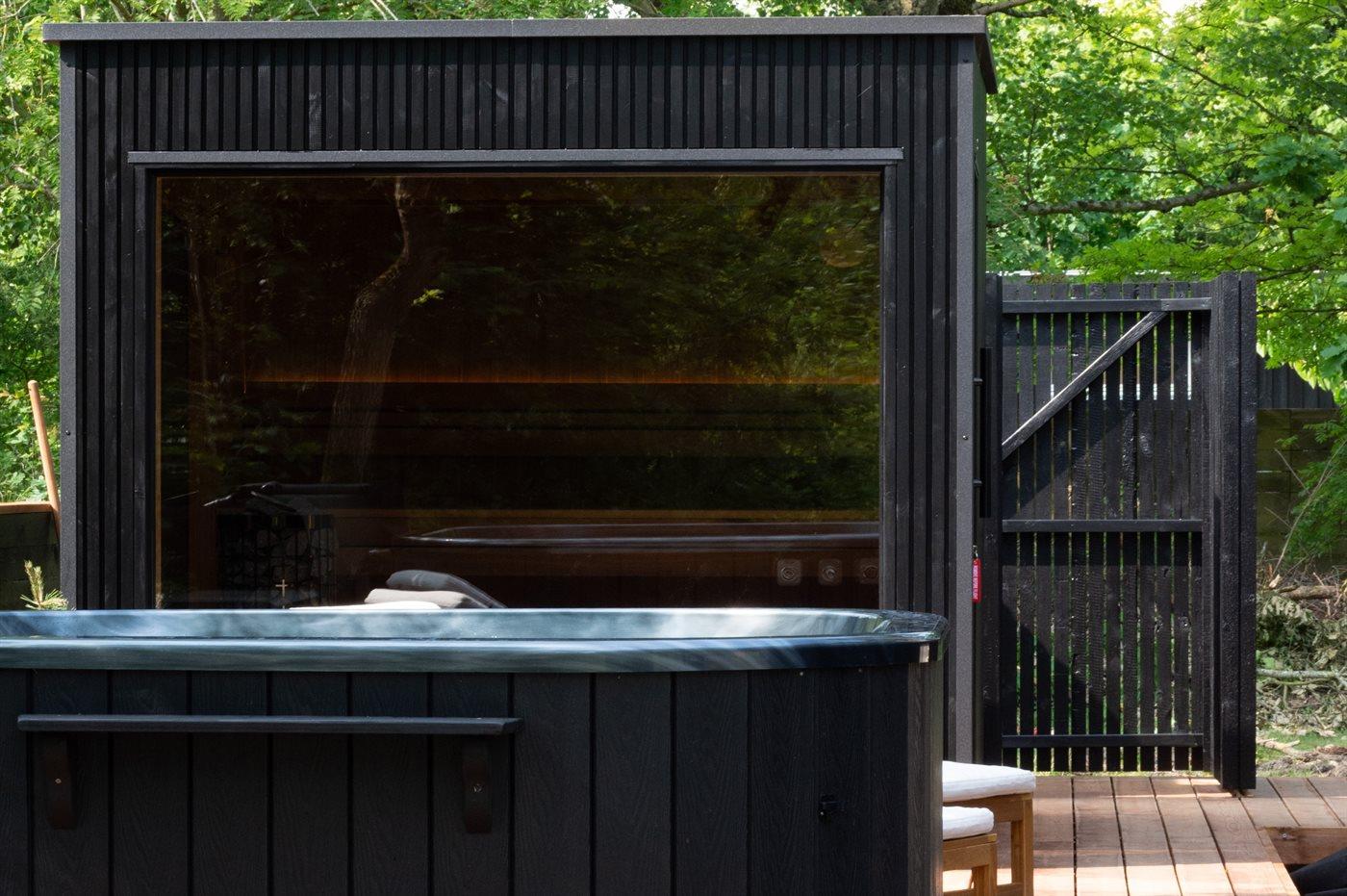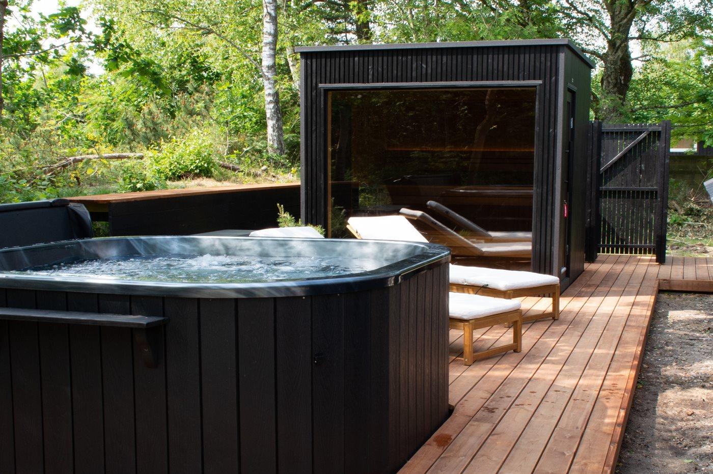 Der er mulighed for afslapning i udendørs standvandsspa til 6 personer.
