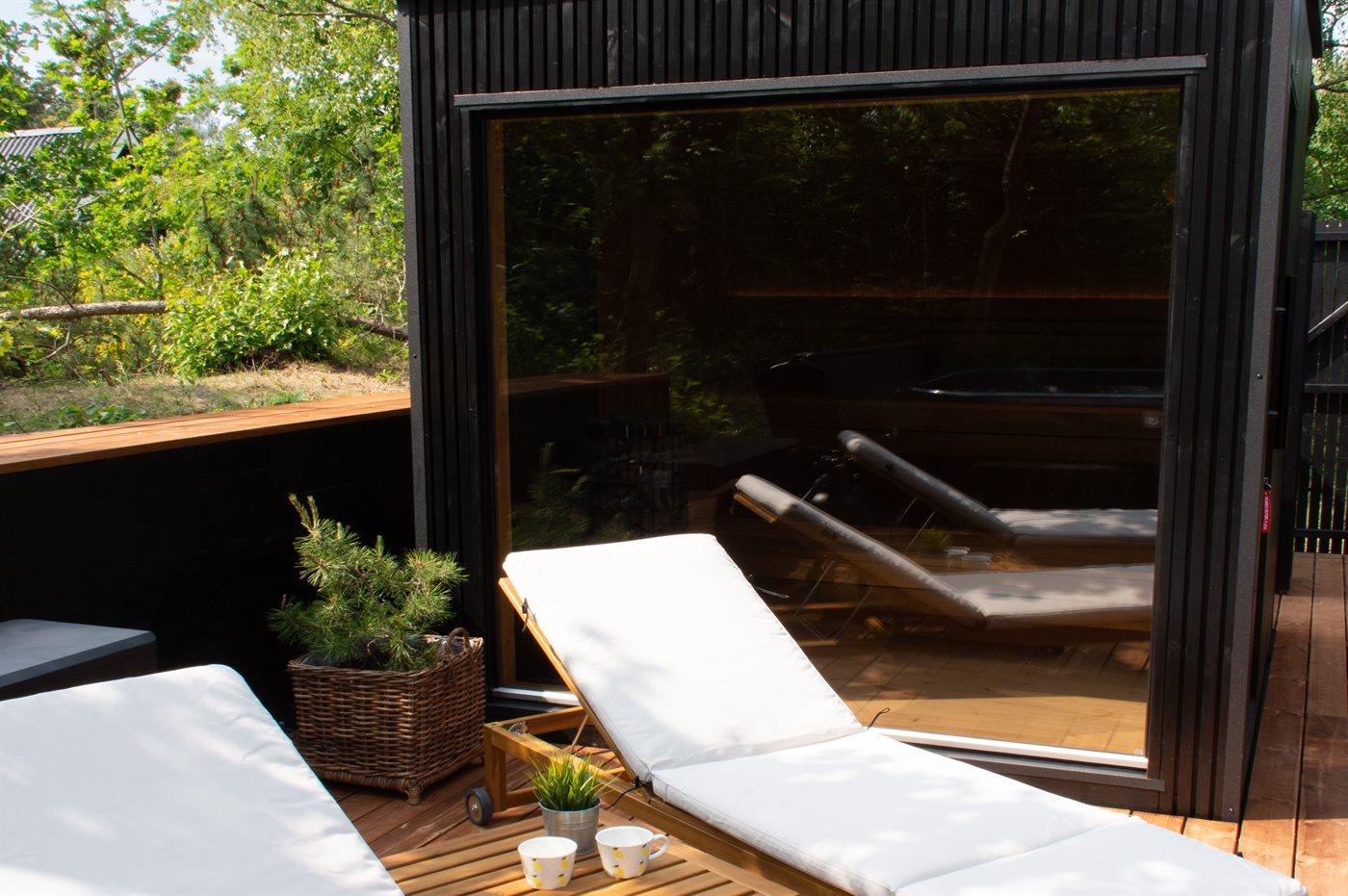 Terrassen er det perfekte sted at slappe af og nyde de omkringliggende naturskønne omgivelser. Her kan du nyde udendørs måltider, grille lækre retter eller bare sidde og beundre den naturlige skønhed omkring dig. Desuden kan du slappe af i den udendørs wellness-afdeling med 6-pers. spa (standvand), sauna og bruser. Den friske havbrise og den beroligende lyd af bølgerne vil gøre dit ophold endnu mere behageligt og mindeværdigt.
