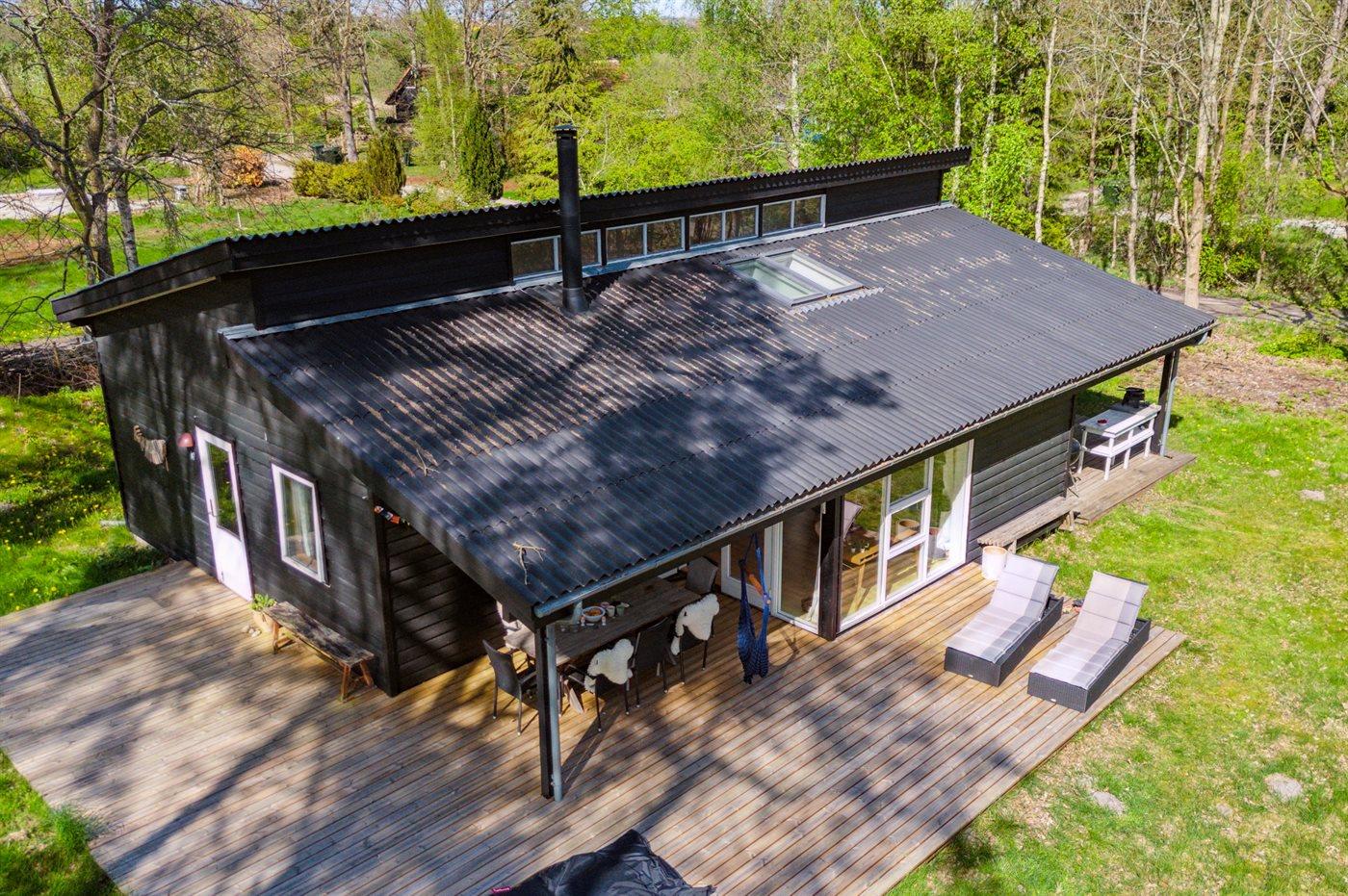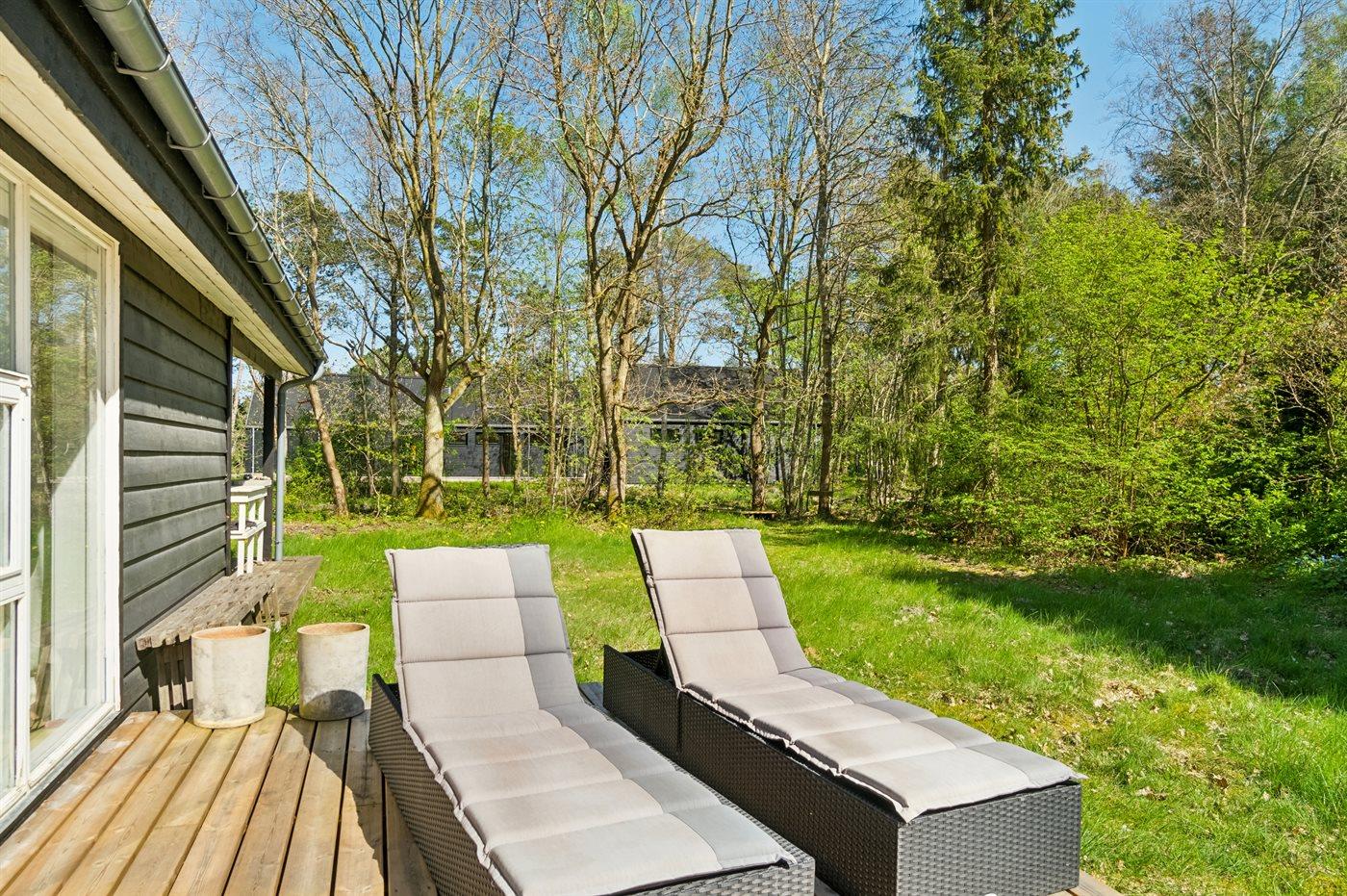 Huset ligger på en lille, privat vej uden ret meget trafik og er fint placeret på grunden. Du kan nyde masser af timer i det fri på husets terrasse, der er bygget således, at du altid kan finde en krog med enten sol, læ eller skygge, alt efter hvad du lige trænger til.