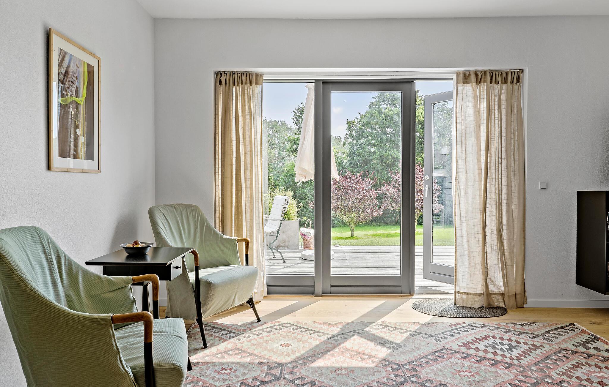 Lys og indbydende ferielejlighed med smuk udsigt til golfbane og grønne marker på Samsø.