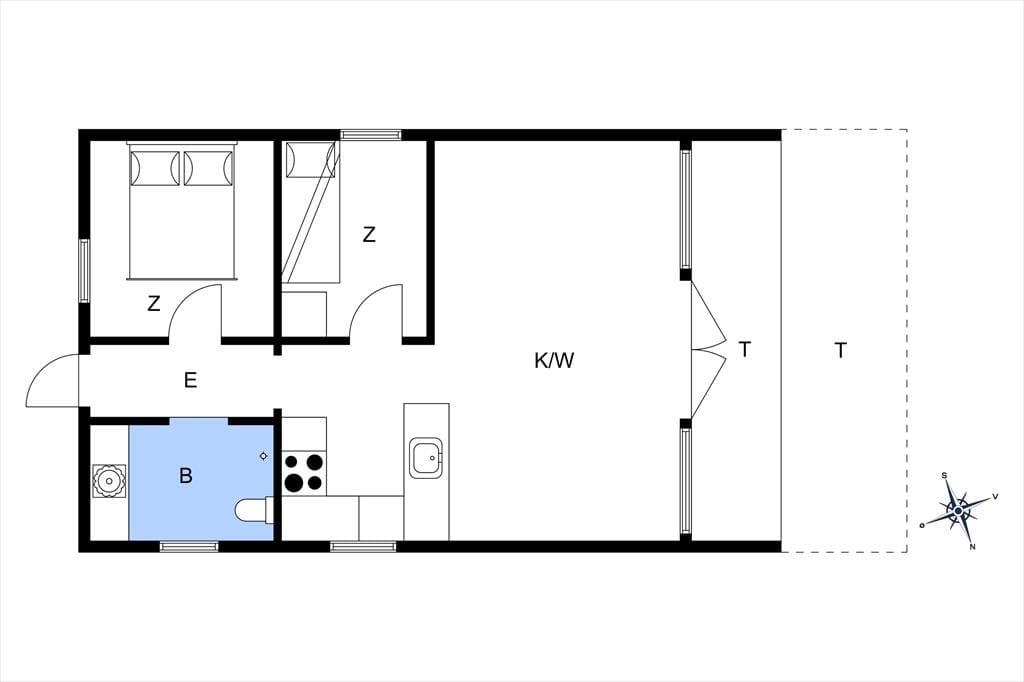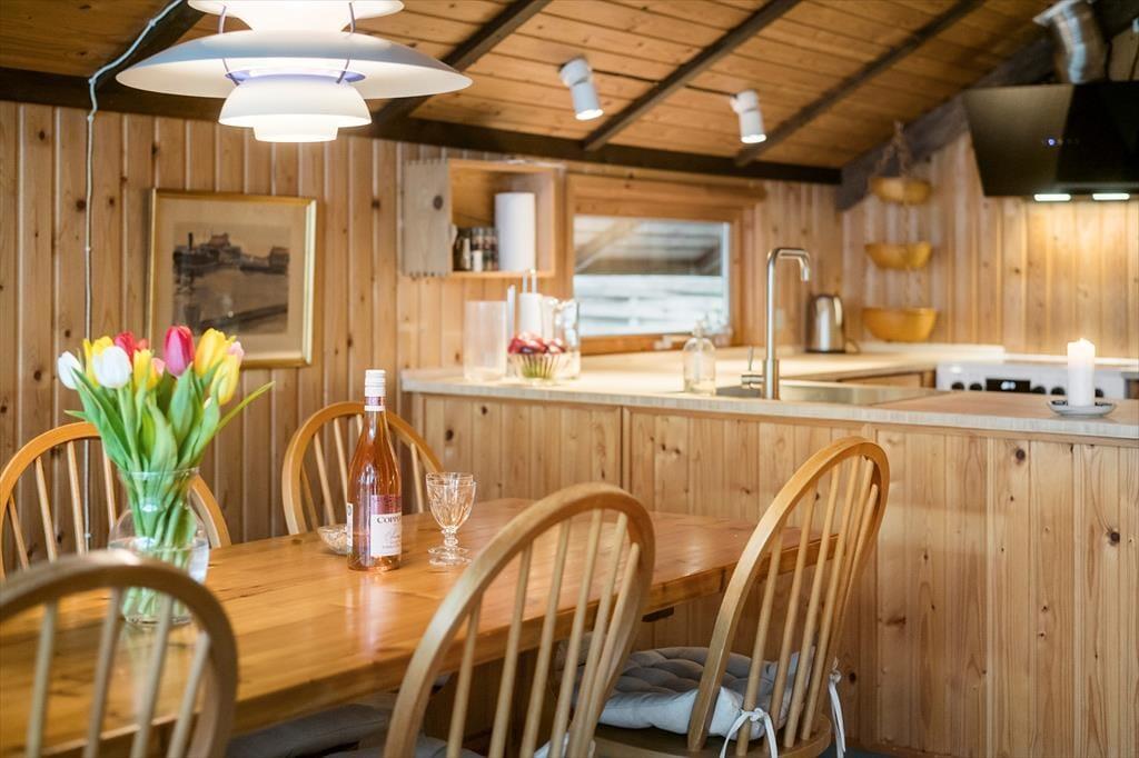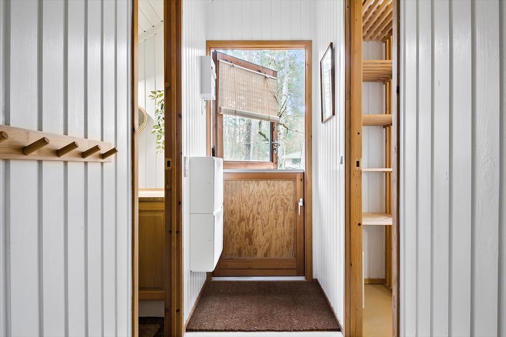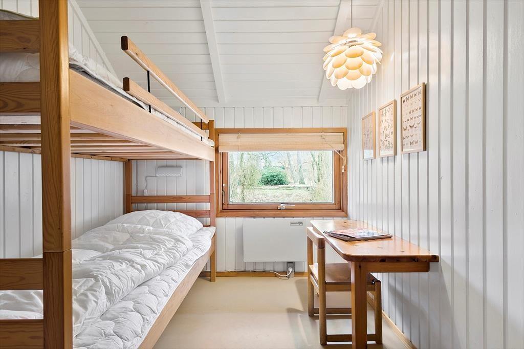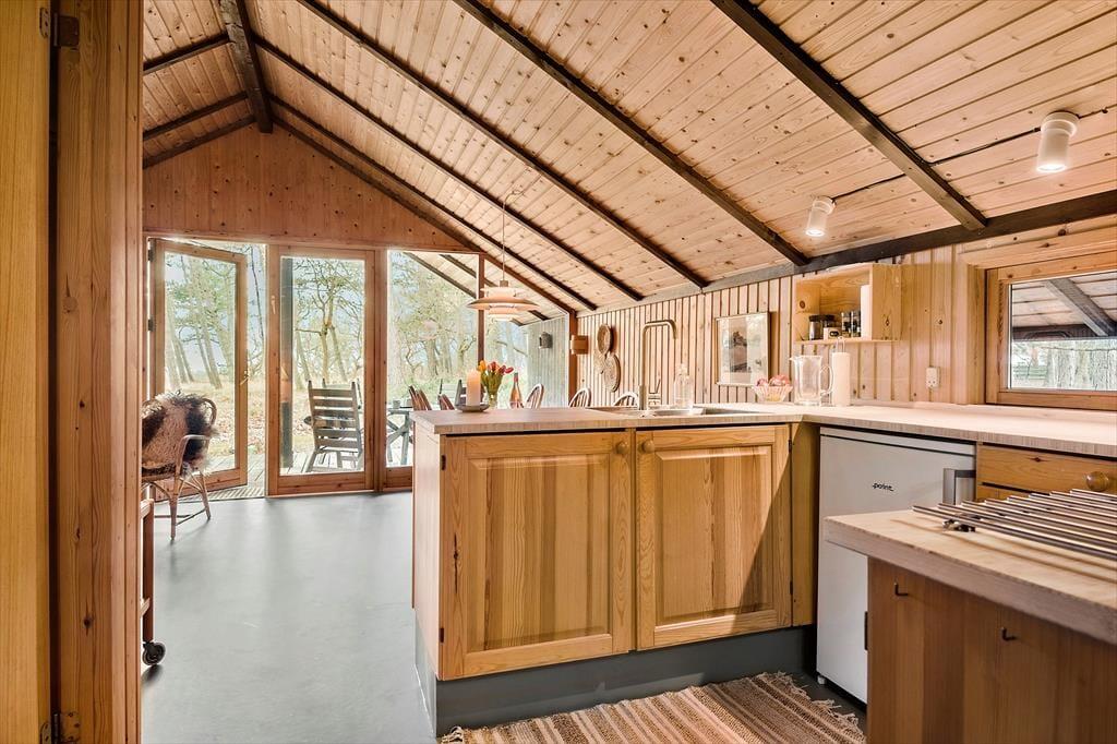 Skovhuset er en lille skjult perle, der er omgivet af vild natur og havet i baghaven. Kvadratmeterne er godt udnyttet i huset og køkken alrummet inviterer til hygge og leg. De store vinduer giver det fineste lys og bringer naturen helt tæt på. Sommerhuset indeholder kombineret køkken og opholdsstue. Huset er delvist moderniseret i 2024. Køkken med induktionskomfur, køleskab med lille frostboks, kaffemaskine og elkedel. Opholdsstue med udgang til delvis overdækket terrasse, hyggelig spiseplads, sofa, lænestole, Smart-TV med DRTV, og adgang til streamingtjenester (kræver eget login). Badeværelse med bruseniche. To soveværelser, et med dobbeltseng og et med en køjeseng (70x190 cm). Huset opvarmes med varmepumpe og elvarme.