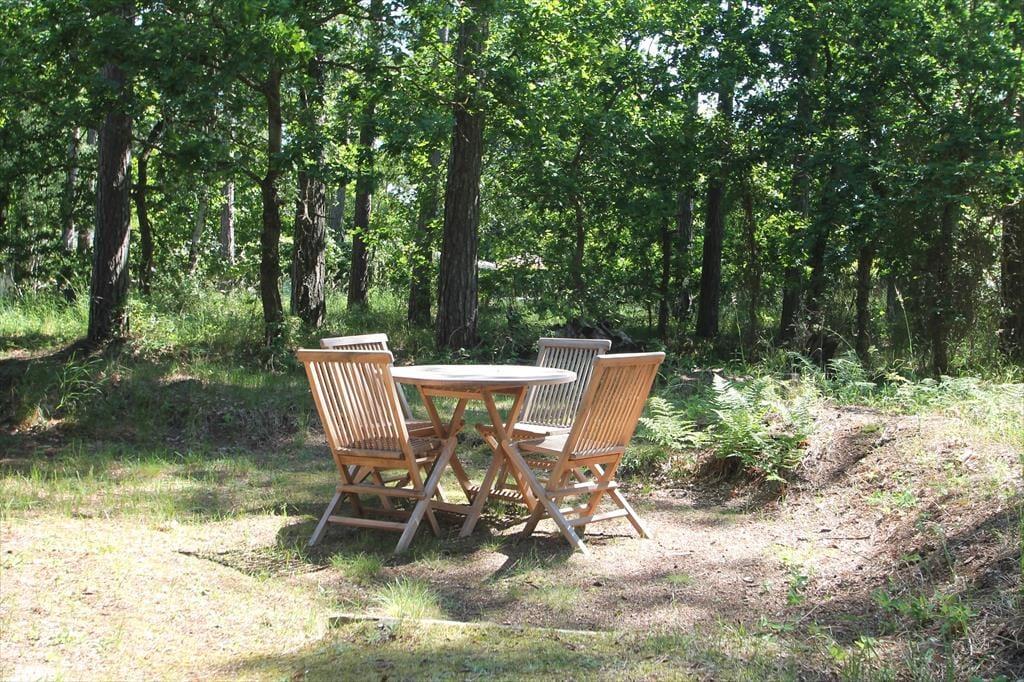 Huset har en velbevaret dejlig naturgrund på 1161 m2 beliggende ved Bildsøplantagen, som har høje smukke fyrretræer, og hvorfra der er kig til vandet. Mærk strandstemningen fra terrassen, hvor I kan se Musholm bugt. Ved enden af vejen er der en sti ned til stranden. Ved huset er der havemøbler og grill