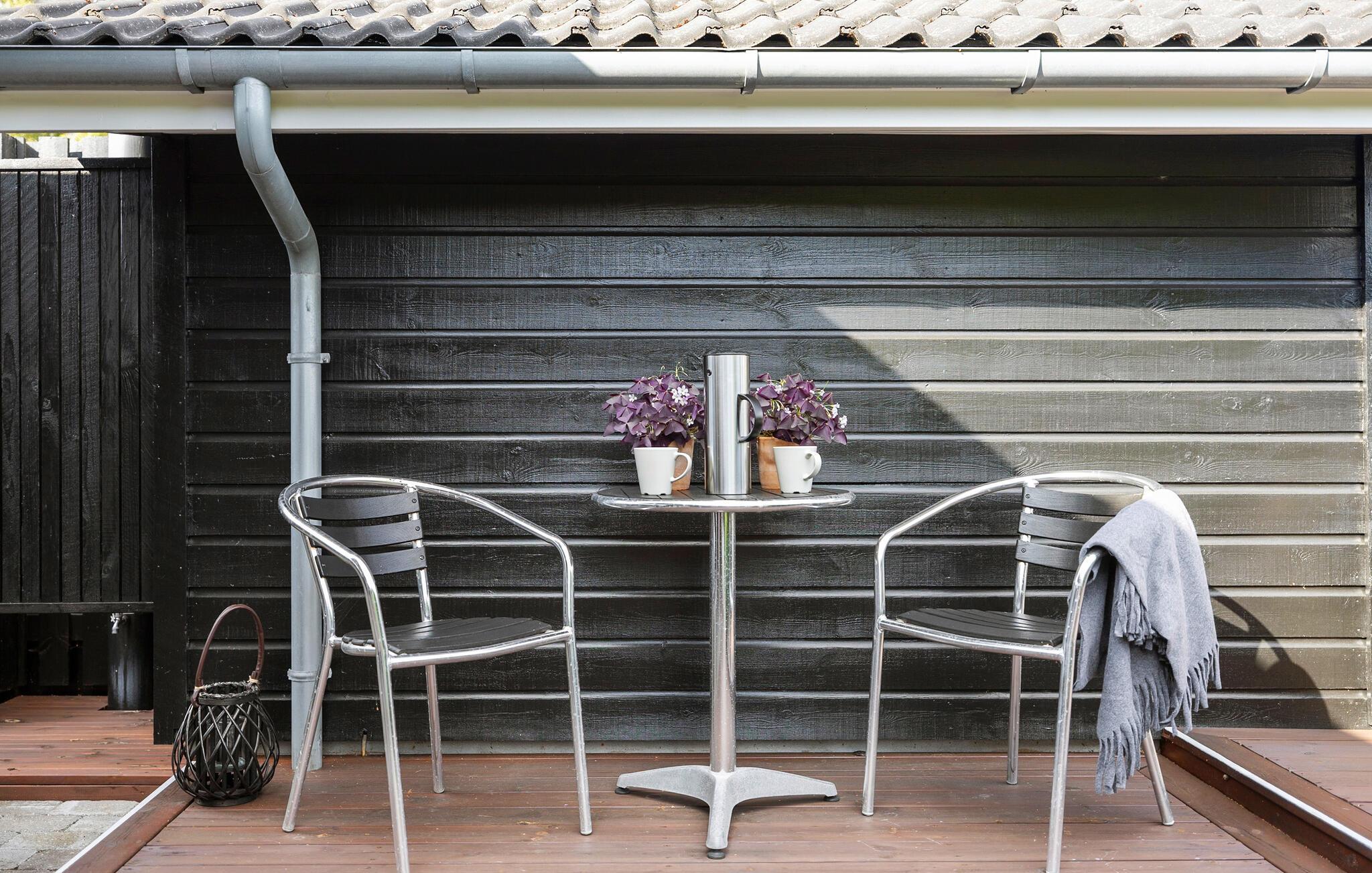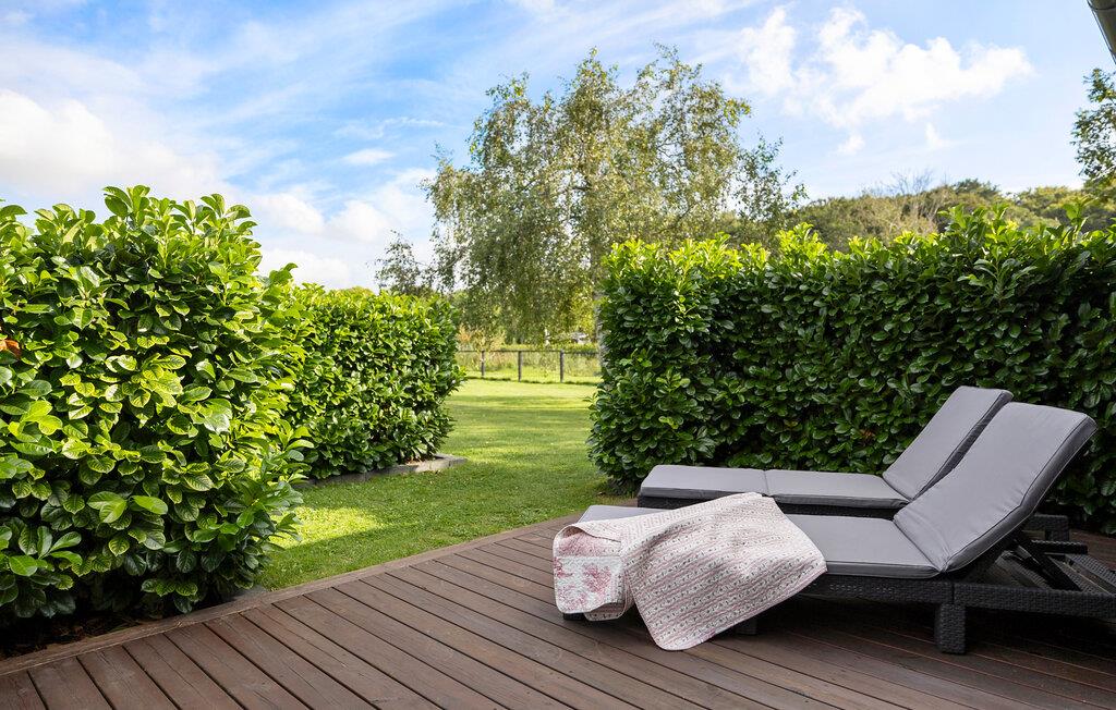 Det velholdte udendørsområde inviterer hele familien til hyggestunder udendørs. Begynd dagene med en dejlig morgenmad på den åbne terrasse, mens børnene leger på den store græsplæne. Fordyb jer i jeres ferielæsning på de behagelige liggestole, nyd jeres tid sammen med stemningsfulde grillmad eller bag snobrød omkring det hyggelige bålsted.