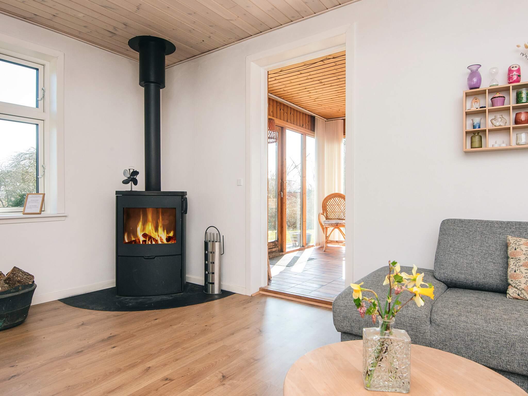 På første sal er der desuden en stue med den smukkeste udsigt over vandet. Både i stueetagen og på første sal er der to soveværelser og et badeværelse. Alle sommerhusets soveværelser ligger i god afstand fra hinanden, hvilket gør det nemt at dele rummene op. Der er brændeovn i huset.
