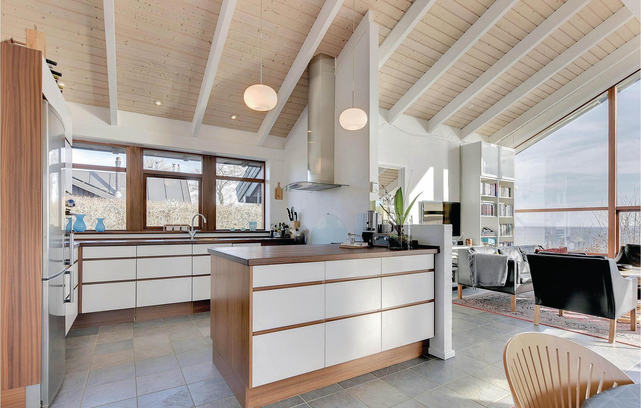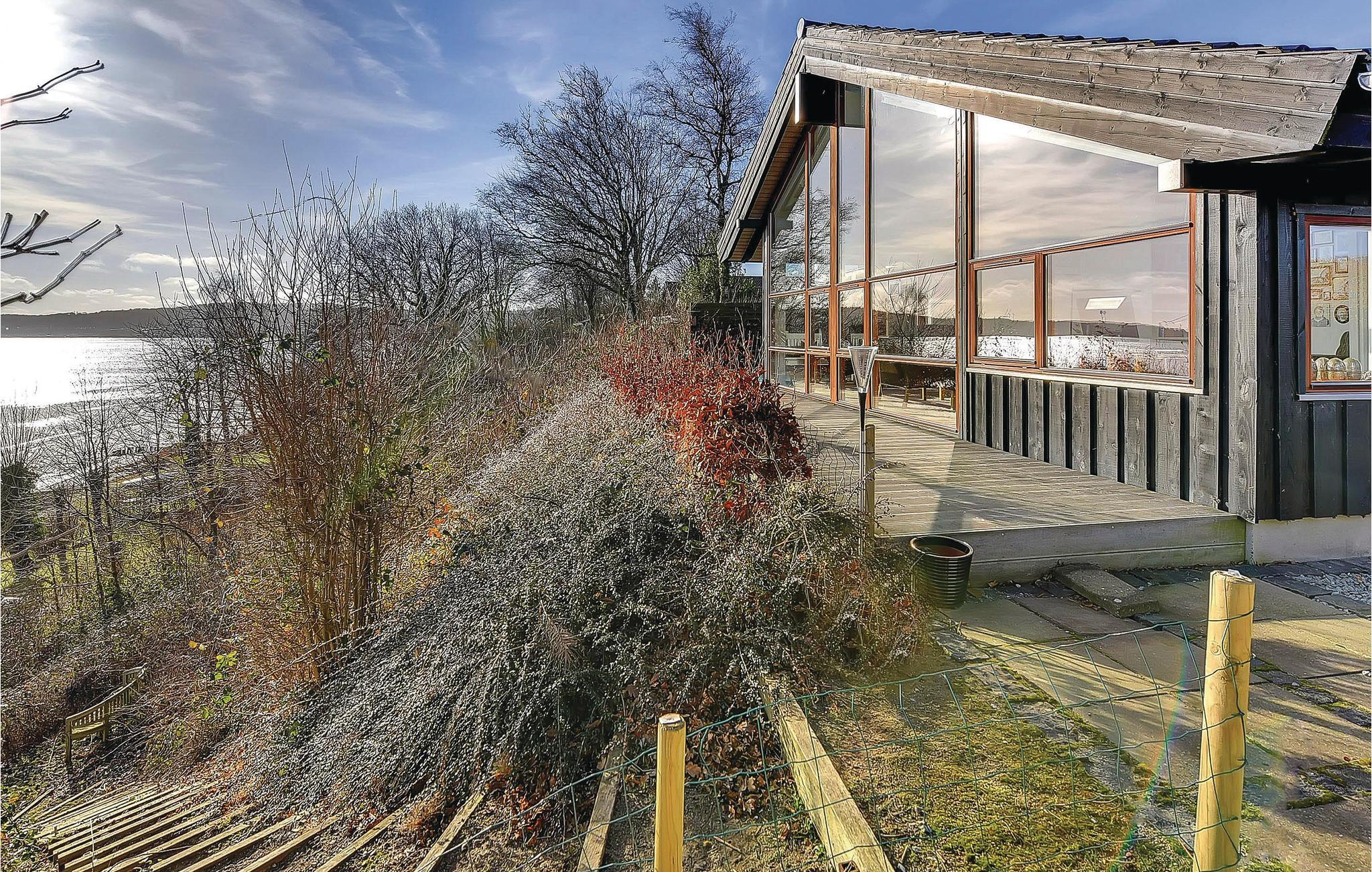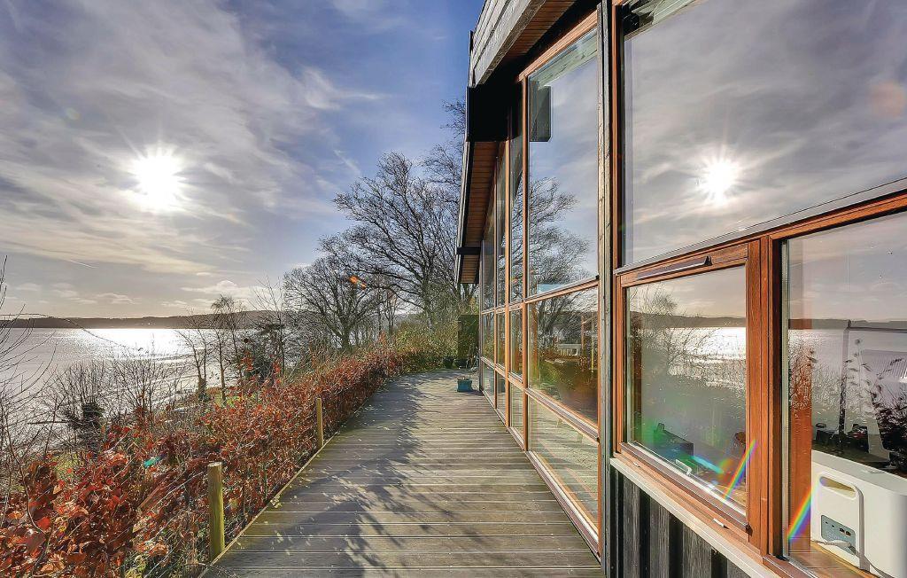 Dette sommerhus har den bedste udsigt I overhovedet kan forestille jer - fra huset og terrasserne kan I se ud over Lillebælt helt til Fyn, Bågø og Brandsø - bedre beliggenhed findes ikke! Via en trappe er der direkte adgang til stranden, der er meget børnevenlig og I skal rigtig langt ud, før det bliver dybt. Huset ligger på en stille vej og I kan opholde jer ugenert på grunden. Overalt i huset er der brugt materialer af høj kvalitet. De store panoramavinduer og de høje lofter giver jer en enestående udsigt og et pragtfuldt lysindfald. Huset byder på alt hvad I behøver for at holde en perfekt ferie - et dejligt køkken, stort badeværelse med spabad og store gode soveværelser. Binderup er et stort sommerhusområde i Sønderjylland med udsigt over Lillebælt. Området er naturskønt med skov, enge og strand og dermed et ideelt feriested for familier med børn. Her åbnes en hel verden af gode ferieoplevelser. Under opholdet er der ikke mange minutters kørsel til den nærmeste større by, Kolding. Byens gågader og Kolding Storcenter skaber tilsammen et butiksmiljø, der giver rig mulighed for indkøbsture. Uanset hvad I måtte stå og mangle, findes det i Kolding. Det er også her I finder det flotte gamle kongeslot Koldinghus, der absolut er et besøg værd. Binderup strand er flere gange kåret som Danmarks mest børnevenlige strand, og er derfor ideel til børnefamilien, der vil nyde denne flotte strand, med gode bademuligheder.