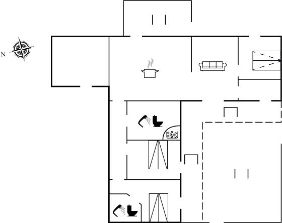 Der er 2 badeværelser med bruseniche og 2 toiletter. Der er gulvvarme på 2 badeværelser.