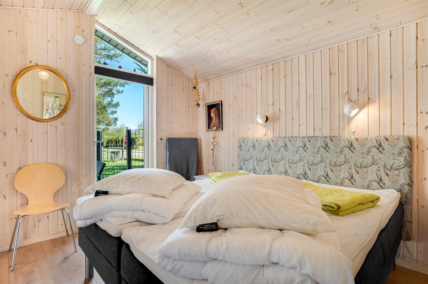 Der er i alt 3 soveværelser. Sovepladserne fordeler sig på: 4 sovepladser i dobbeltsenge. 2 sovepladser i enkeltsenge. Derudover er der 1 stk. barneseng.